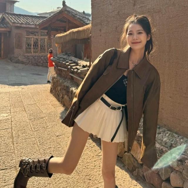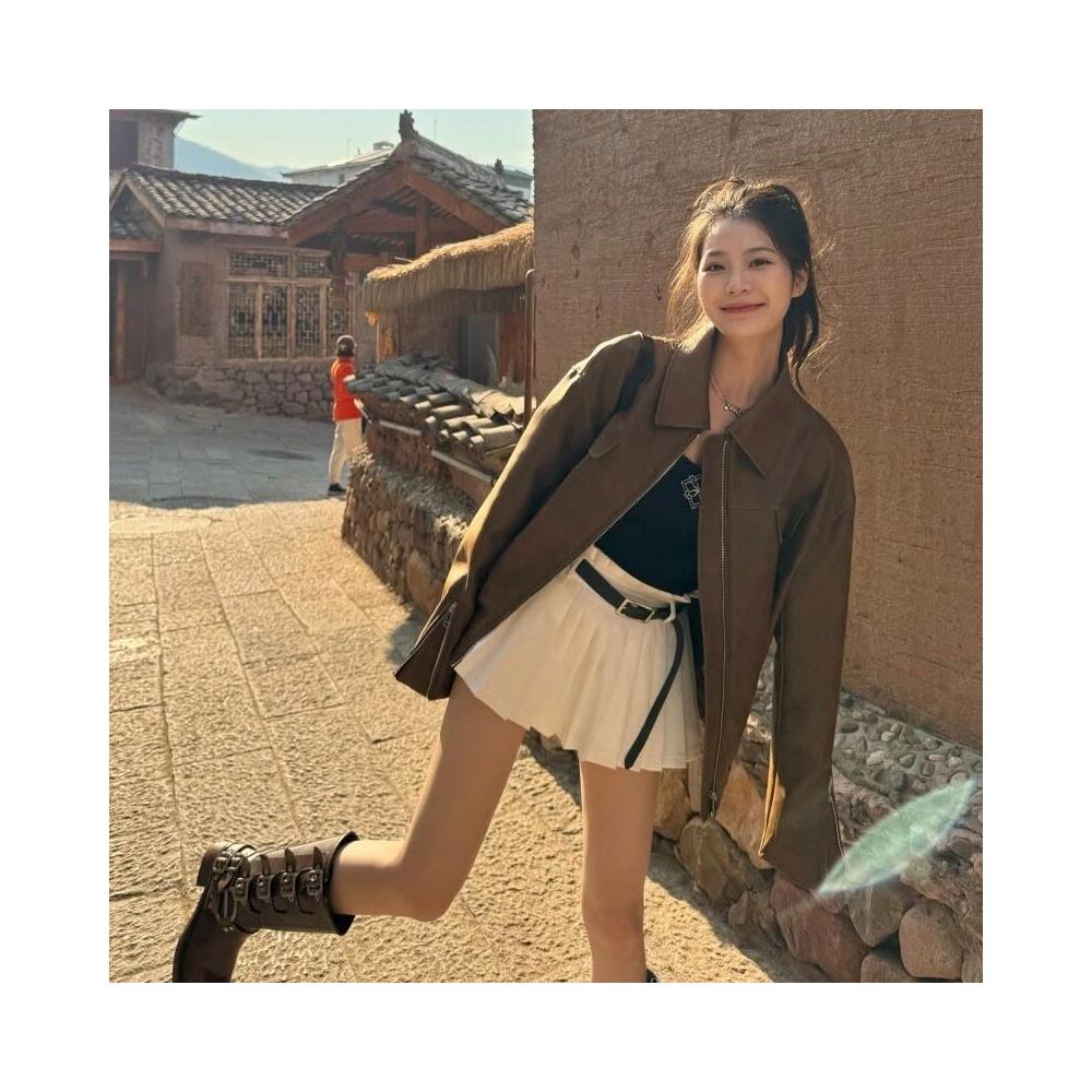 棕色皮衣外套女新款季機車服短款咖色美拉德夾克 1