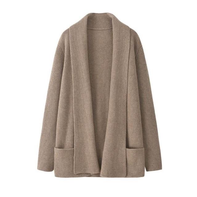 2025春新100純山羊絨開衫毛衣外套棕色加厚羊絨外套大衣羊絨衫女 0 4