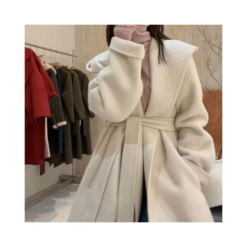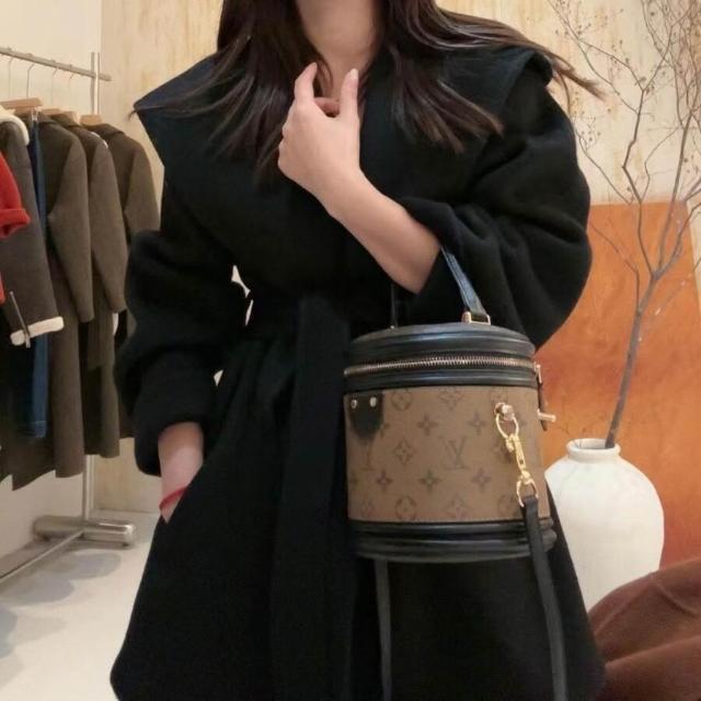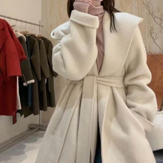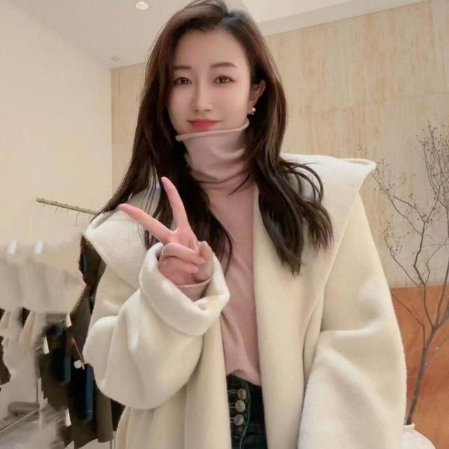 韓版連帽雙面羊毛大衣小個子羊絨上衣高級感駱駝絨桑蠶絲毛呢外套 656