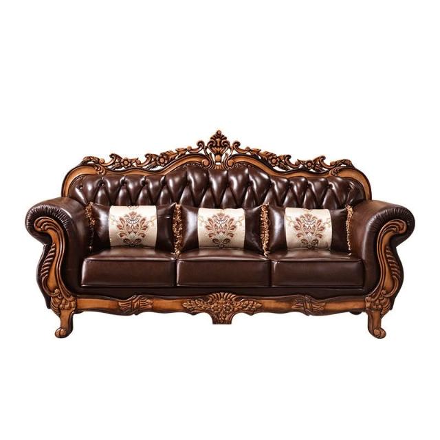 歐式真皮沙發組合客廳實木雕花頭層牛皮美式沙發全屋家具工廠批發 449