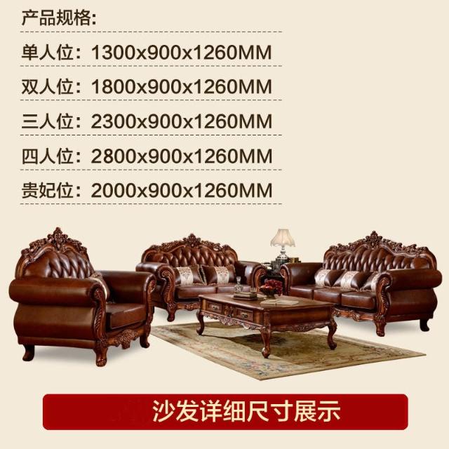 歐式真皮沙發組合客廳實木雕花頭層牛皮美式沙發全屋家具工廠批發 449