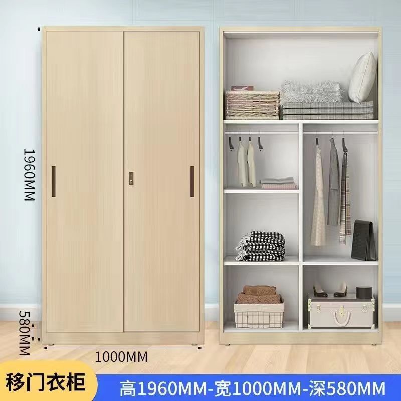 鐵皮衣櫃帶鎖鋼製家用臥室推拉門兒童印花衣櫃大容量收納儲物櫃子 26