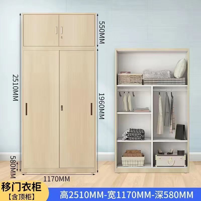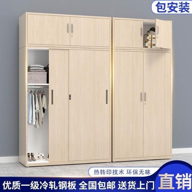 鐵皮衣櫃帶鎖鋼製家用臥室推拉門兒童印花衣櫃大容量收納儲物櫃子 26