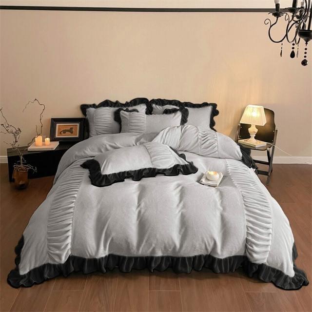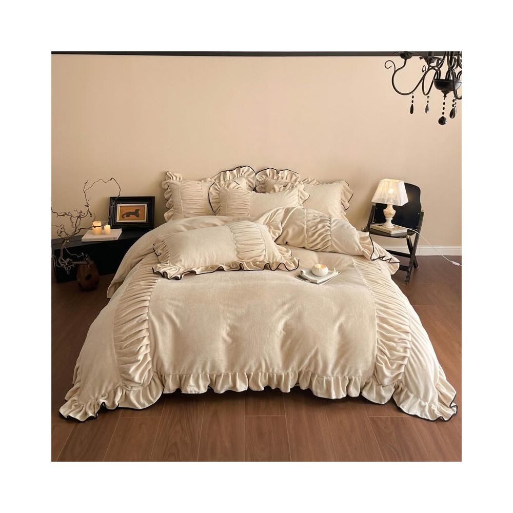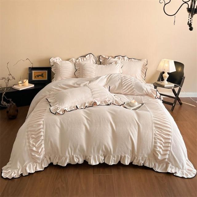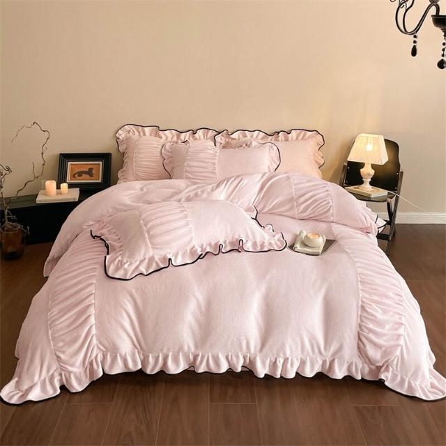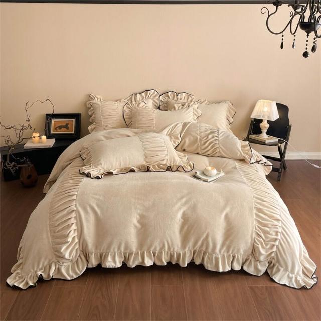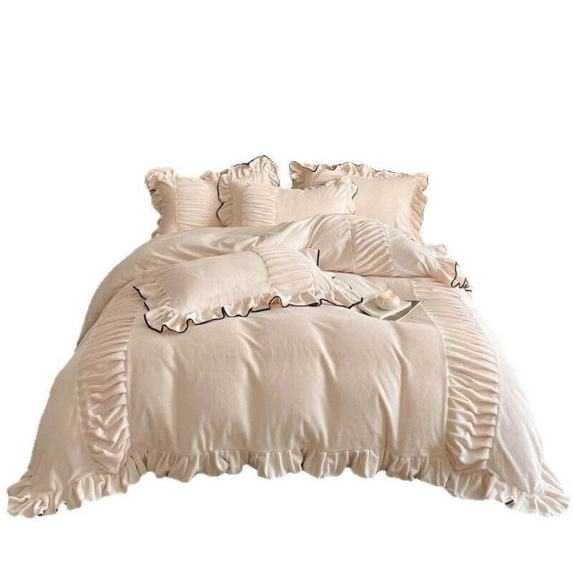 類牛奶絨花邊四件套法式輕奢床品冬季加厚保暖雙面絨床單笠被套 8 4