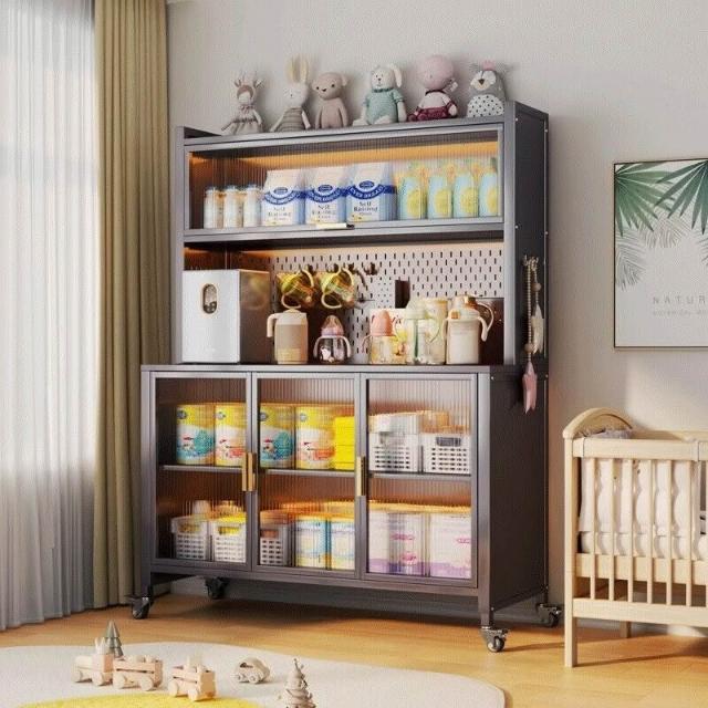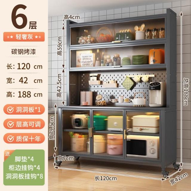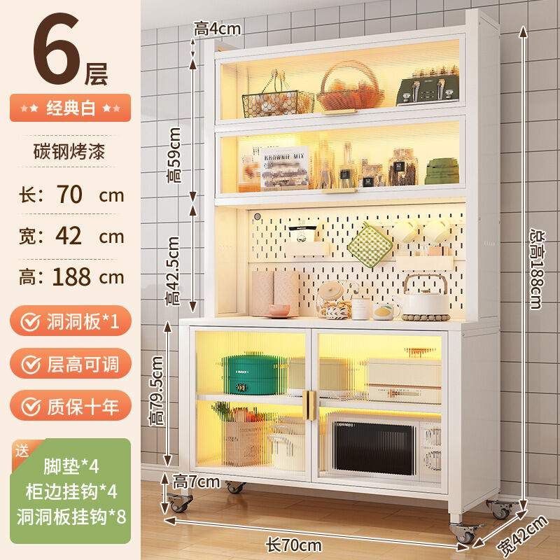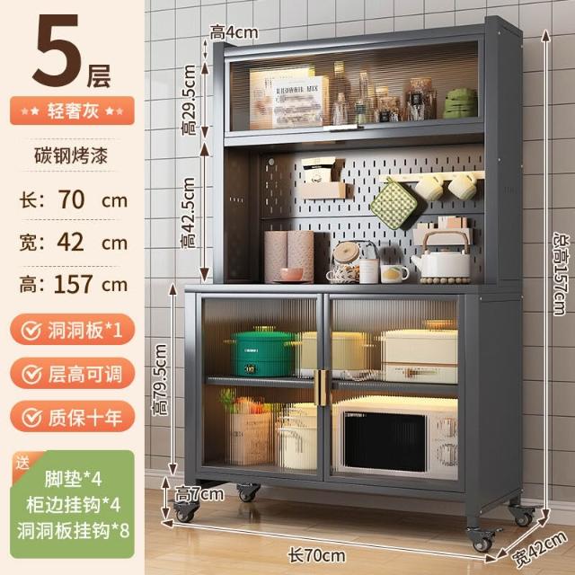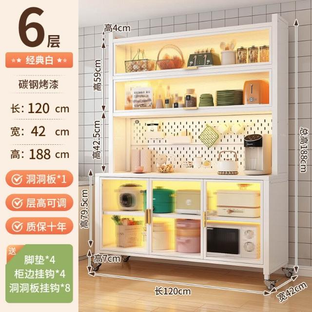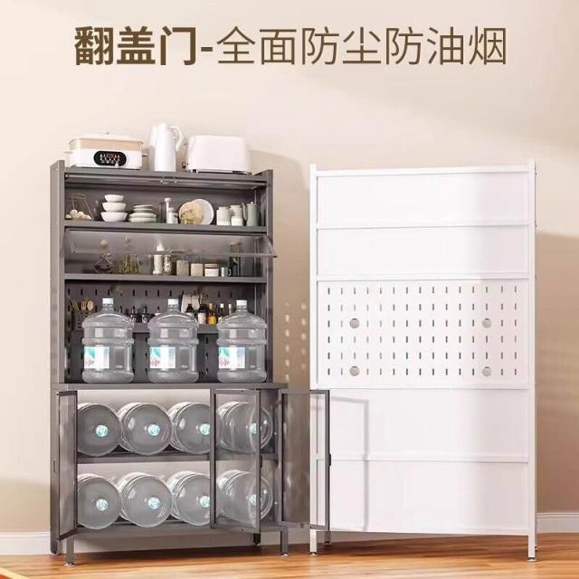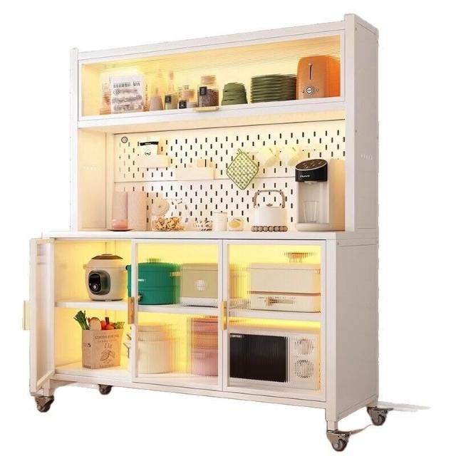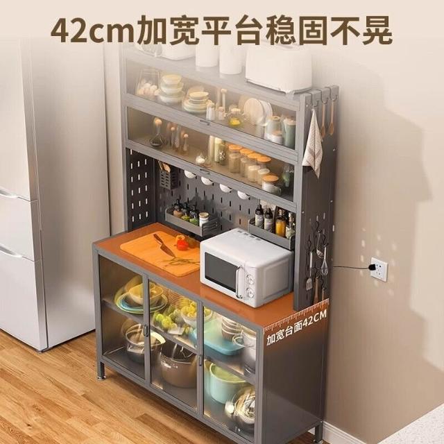 廚房收納櫃靠墻一體餐邊櫃落地多層微波爐鍋置物架多功能家用櫥櫃 0