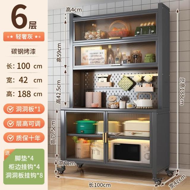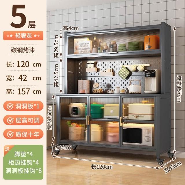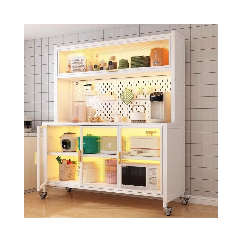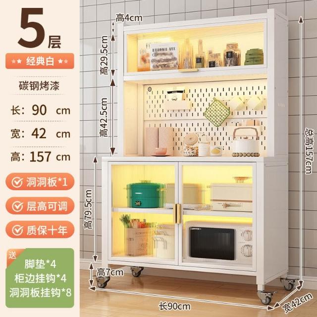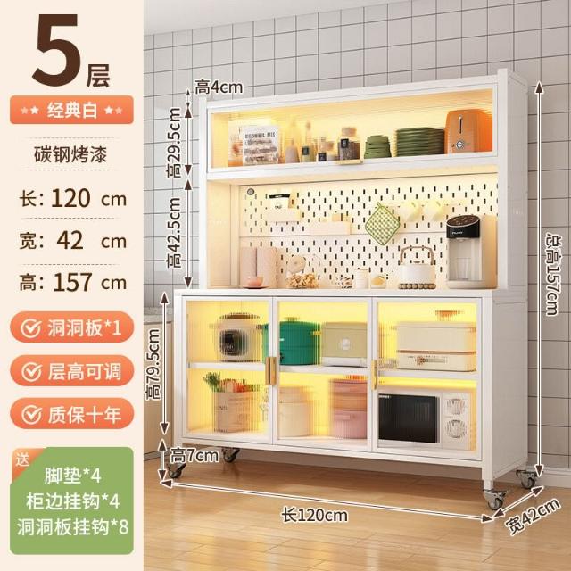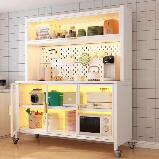 廚房收納櫃靠墻一體餐邊櫃落地多層微波爐鍋置物架多功能家用櫥櫃 0