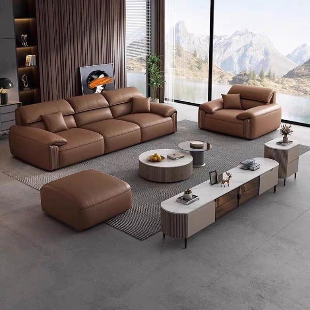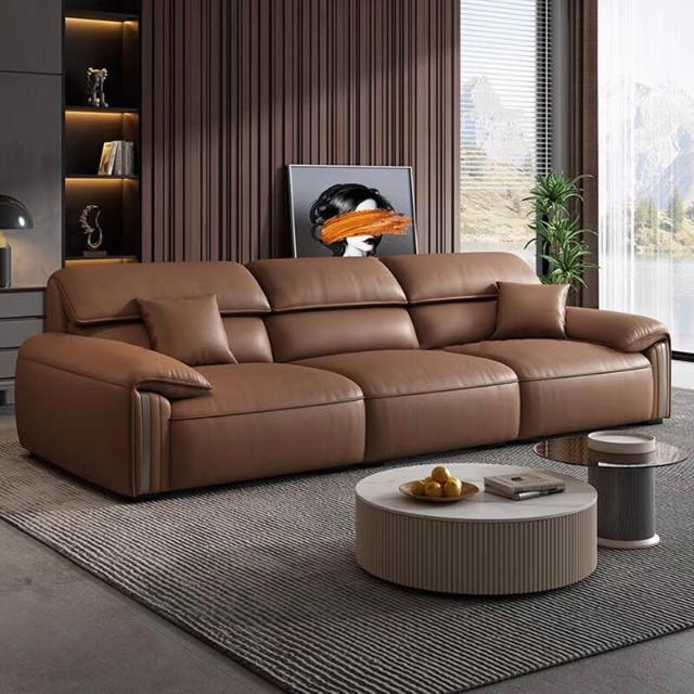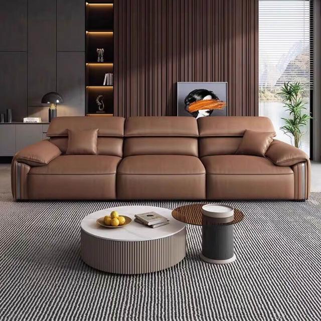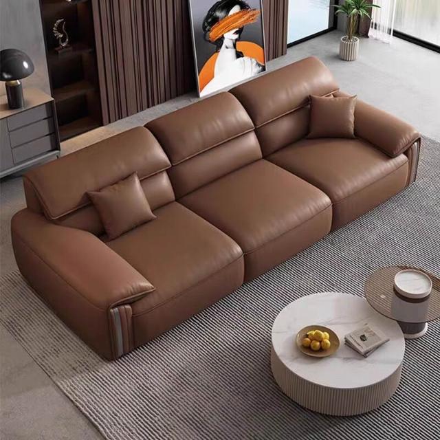 意式極簡頭層牛皮沙發頭層真皮沙發頭層黃牛皮簡約胖墩沙發3米802 23