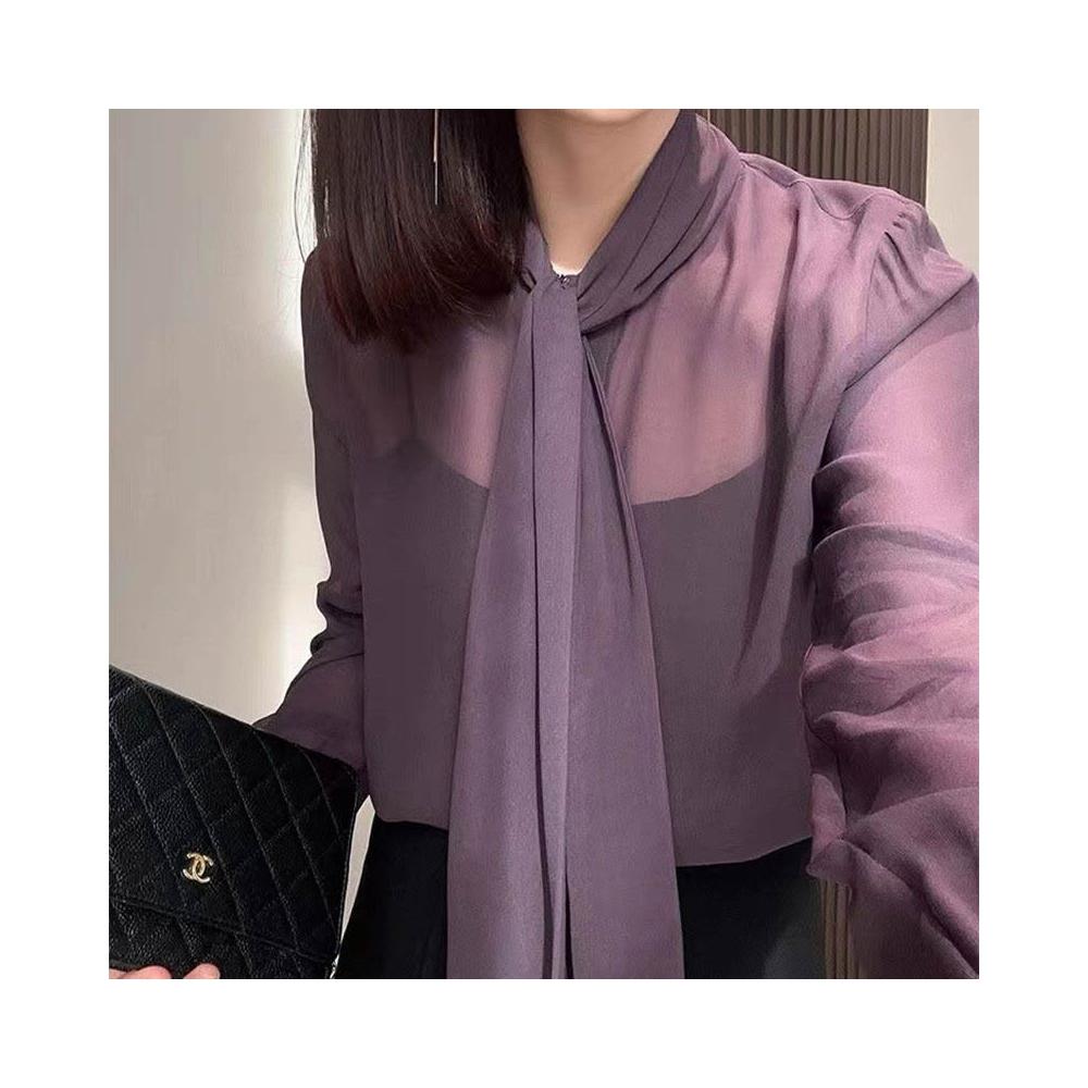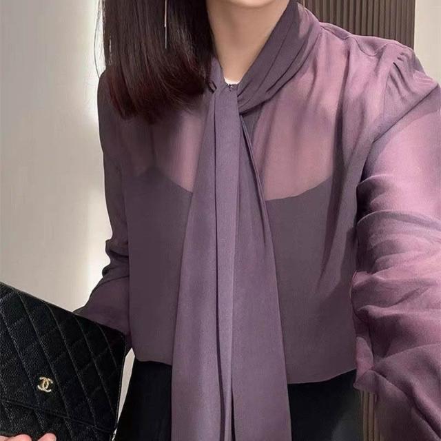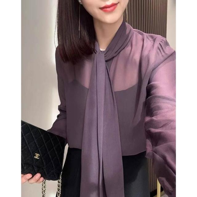 雪紡襯衫女2025年春季新款法式輕熟氣質長袖上衣時髦洋氣透視開衫 0 3