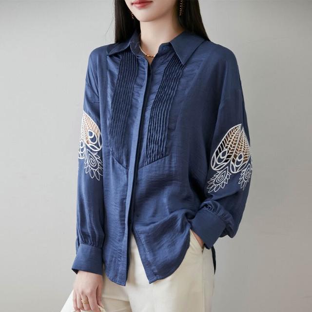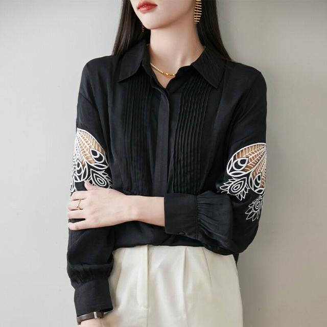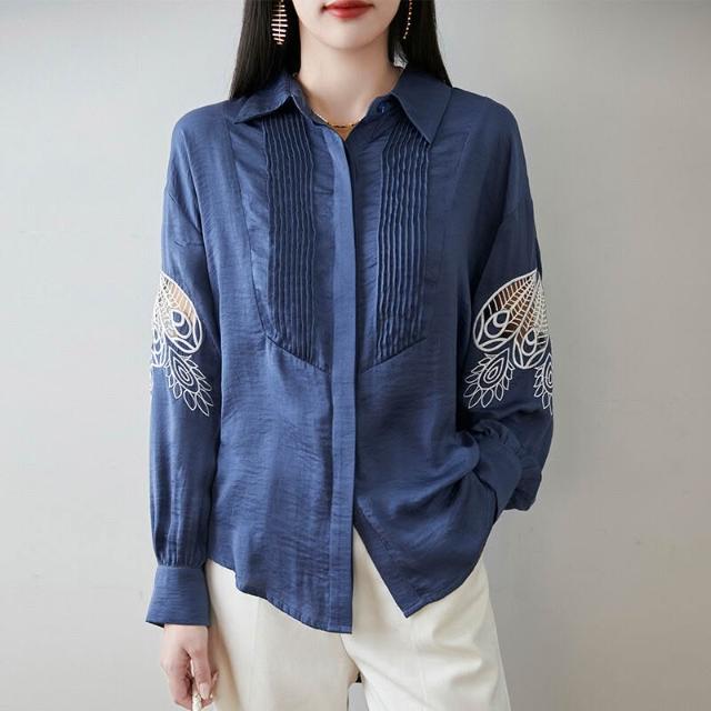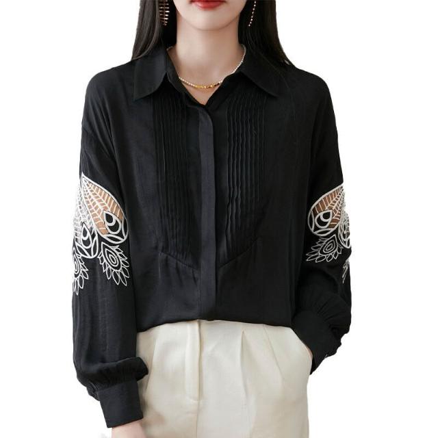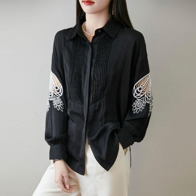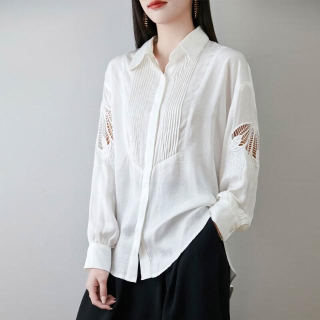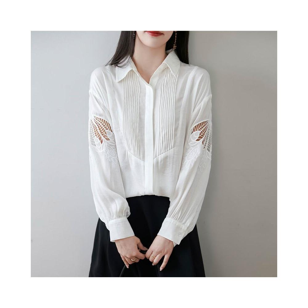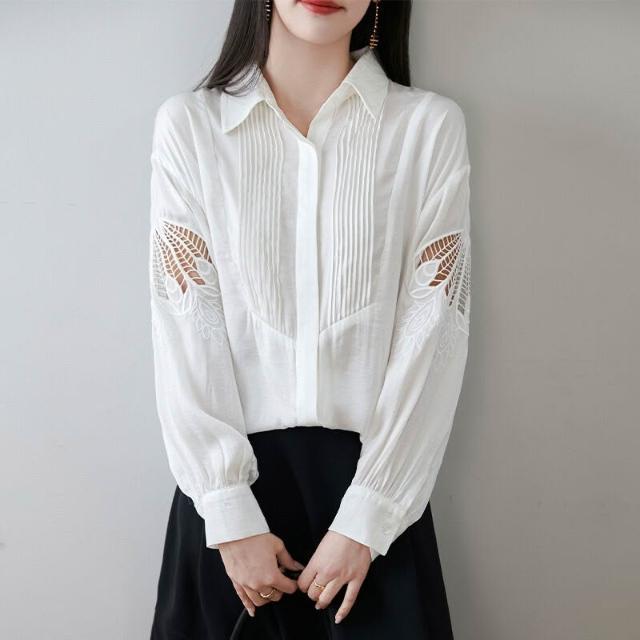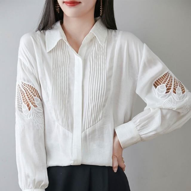 牛奶絲 領襯衫長袖女镂空刺繡2025年春夏新款設計感襯衣上衣 7