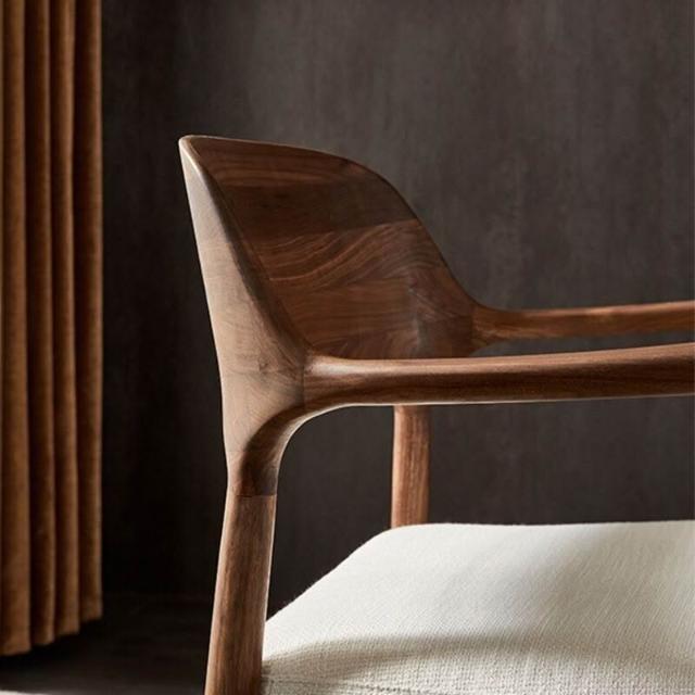 北美黑胡桃木單人沙發椅北歐家用客廳實木軟包沙發休閑椅 0 3