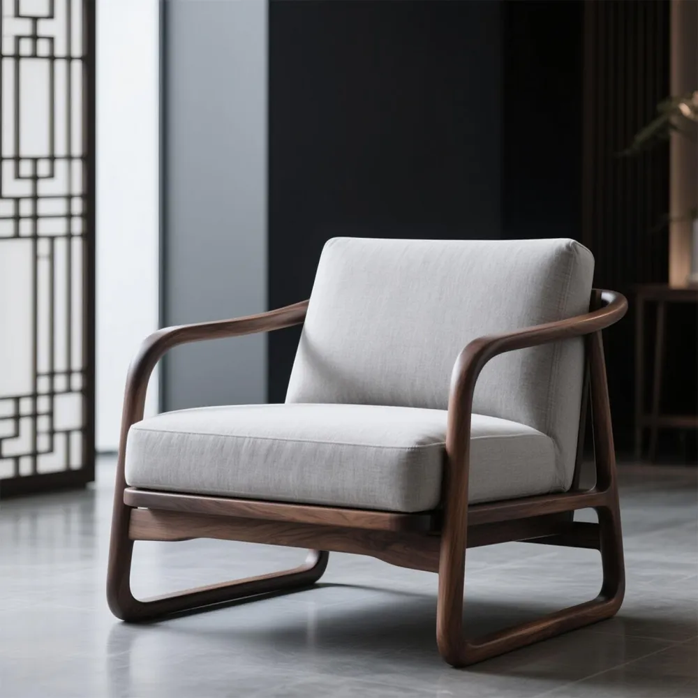 新中式黑胡桃木沙發椅家用客廳休閑椅現代簡約設計師書房單人椅 3