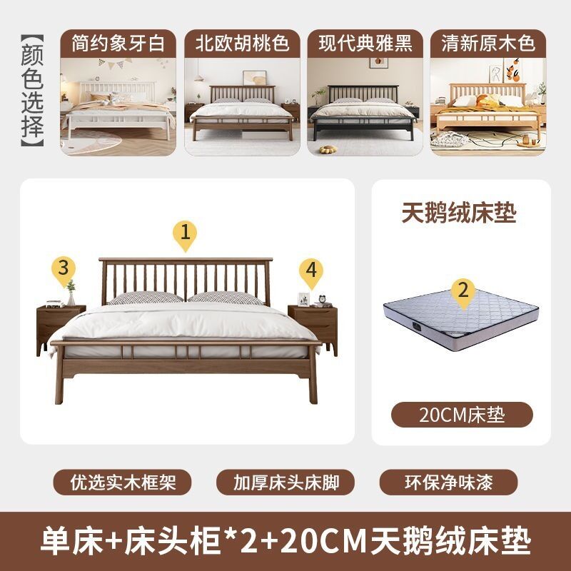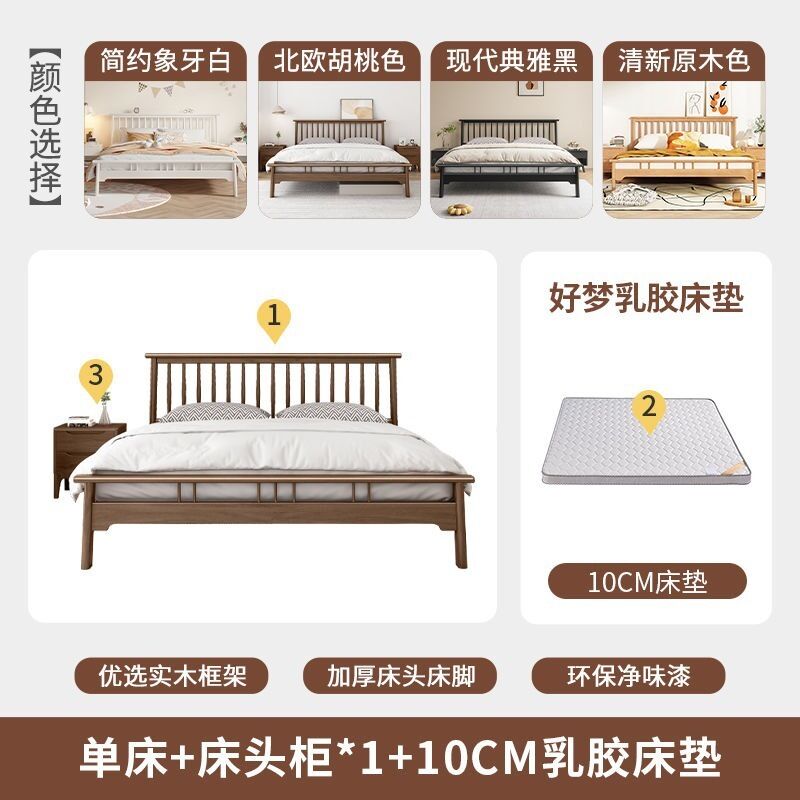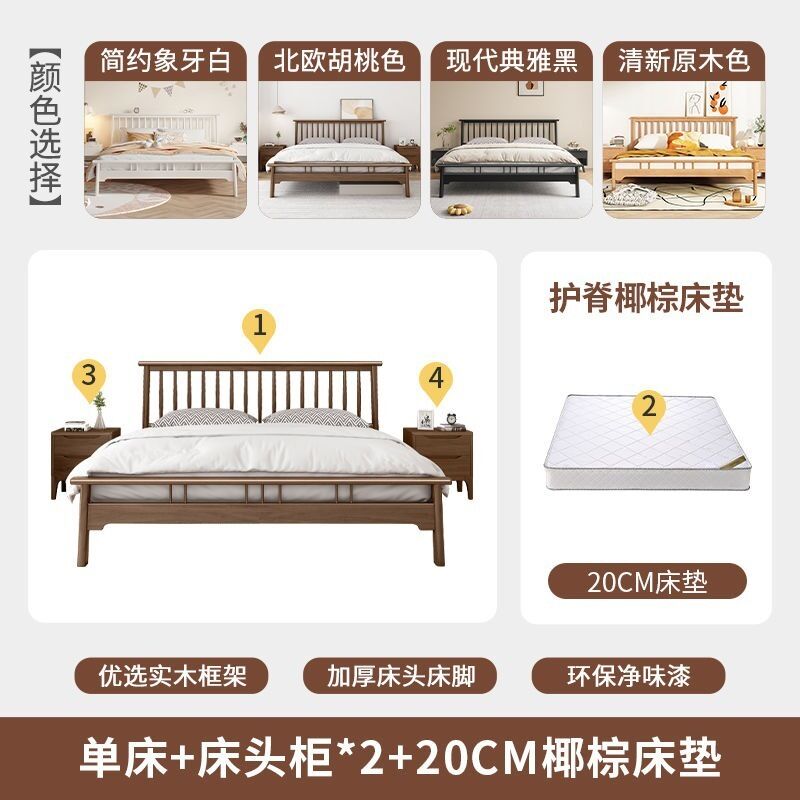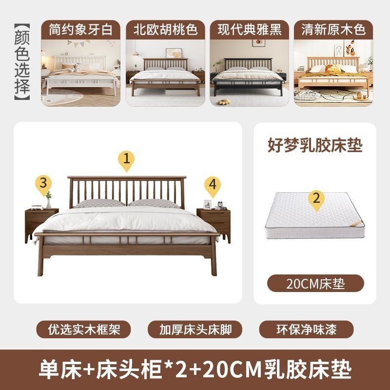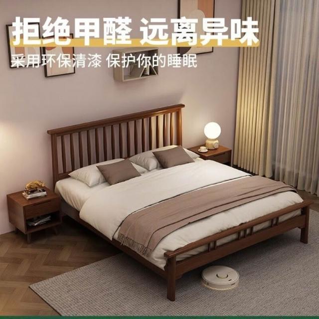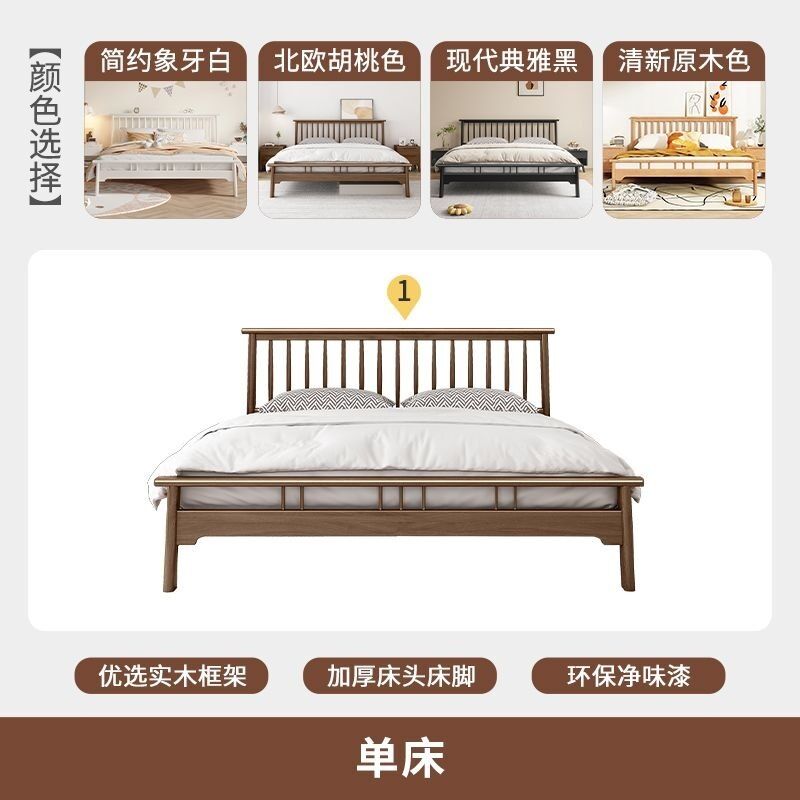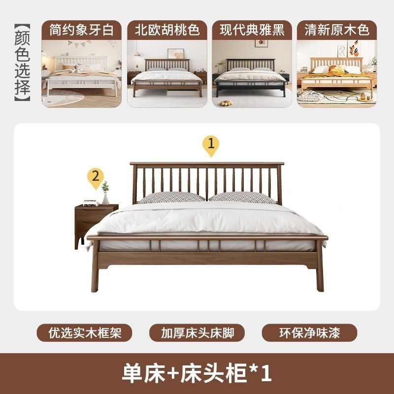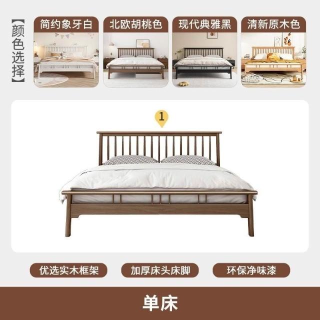北歐實木床1米2單人1米5全實木現代簡約1.8 法式雙人主臥原木民宿 2