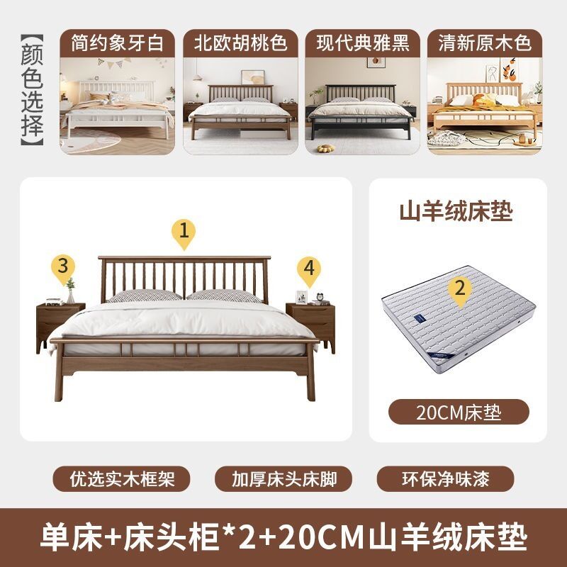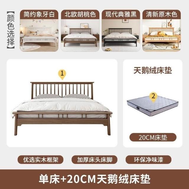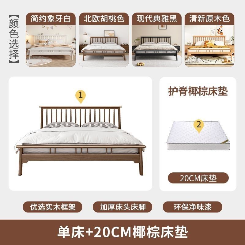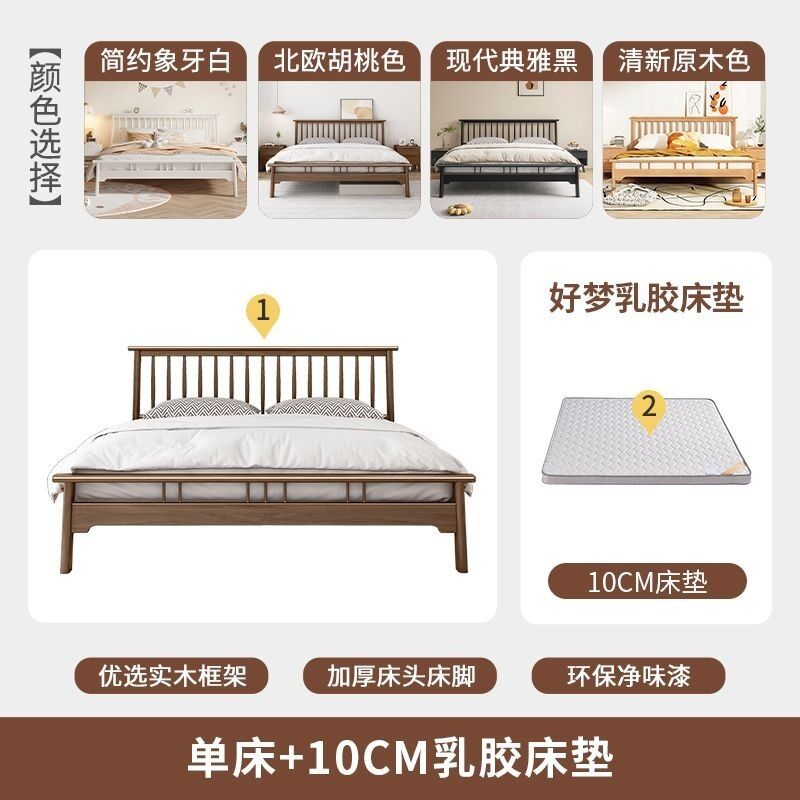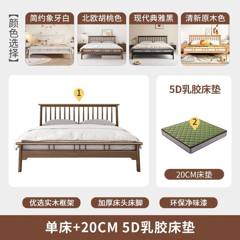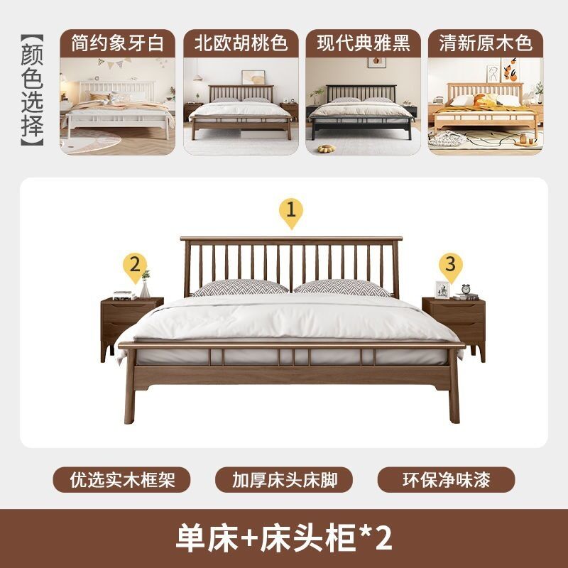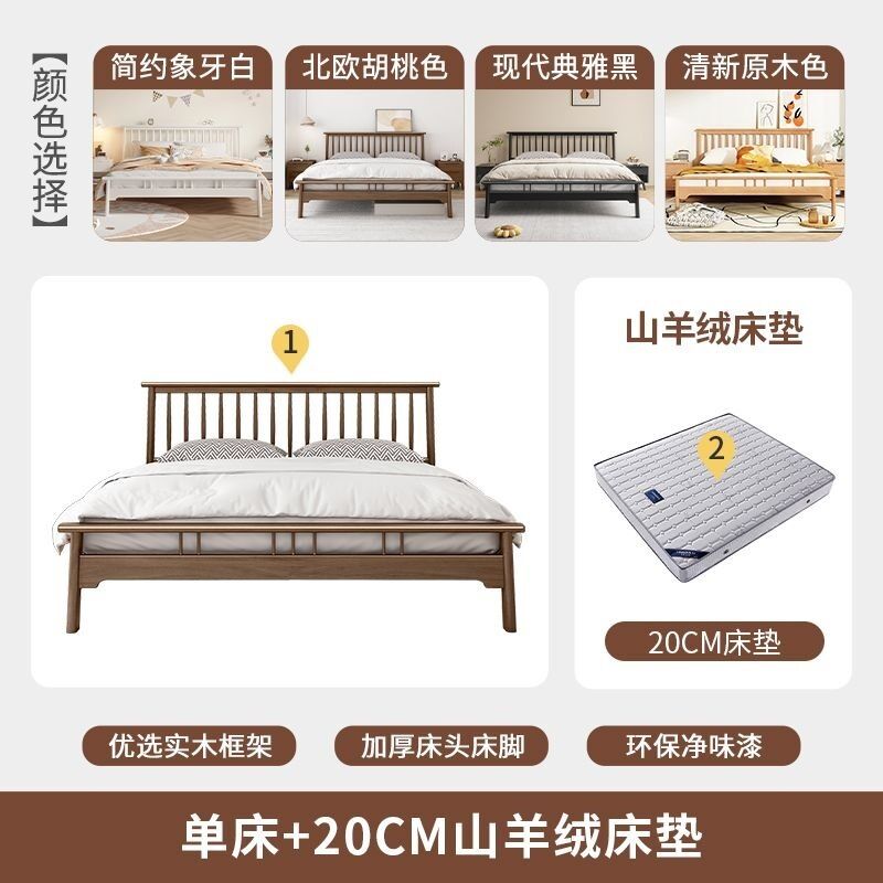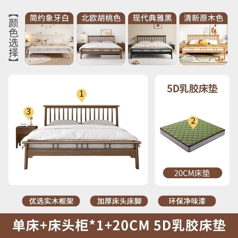 北歐實木床1米2單人1米5全實木現代簡約1.8 法式雙人主臥原木民宿 2