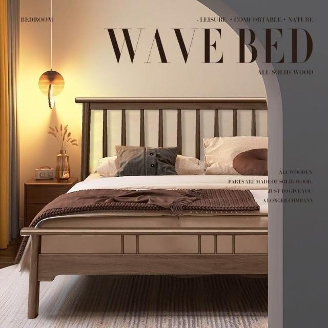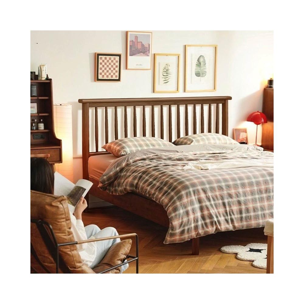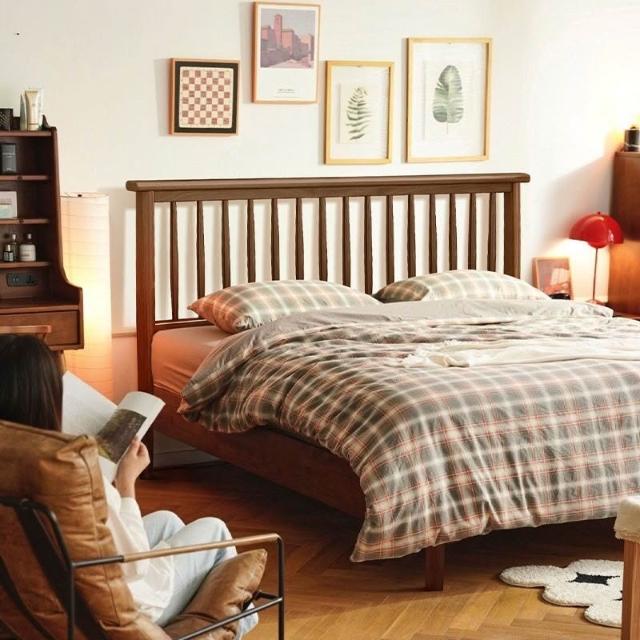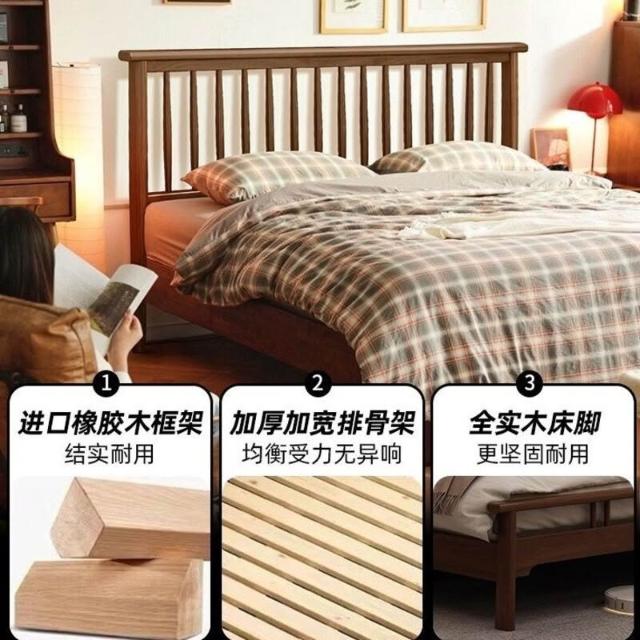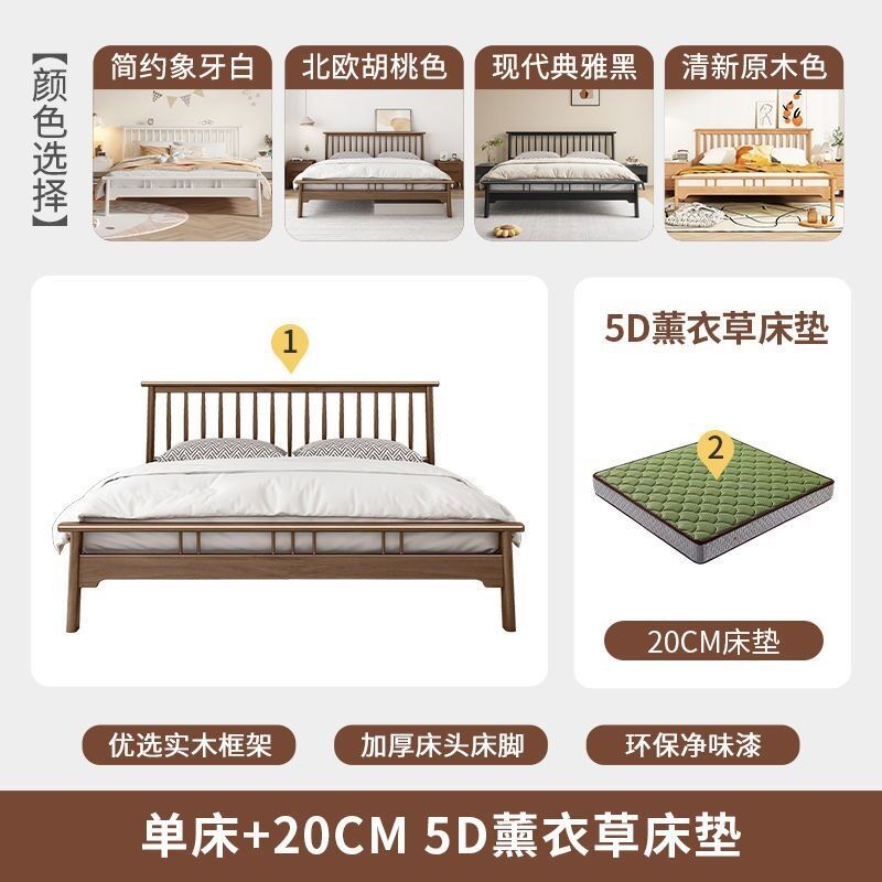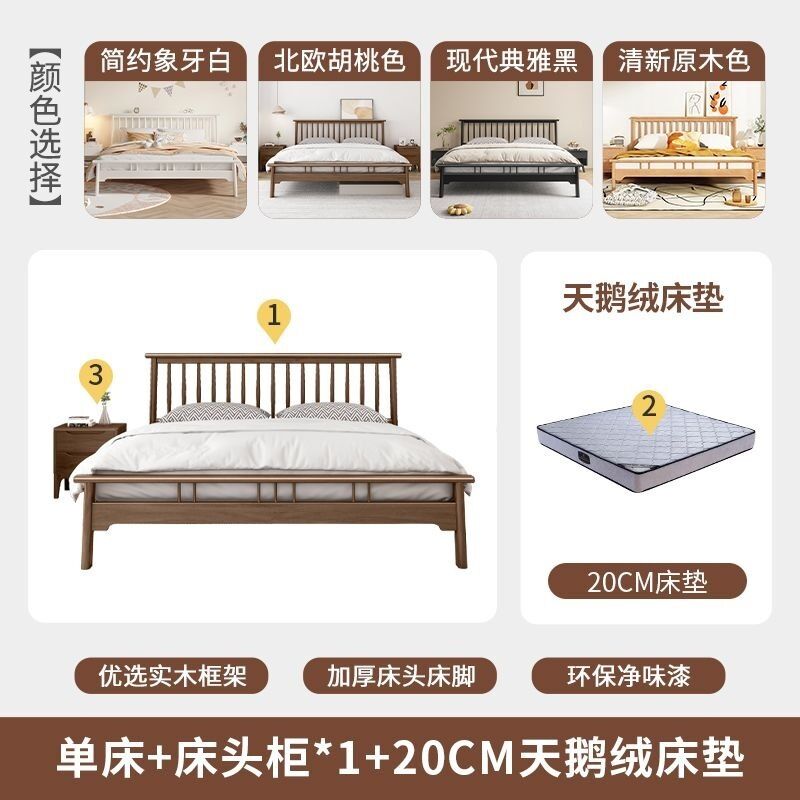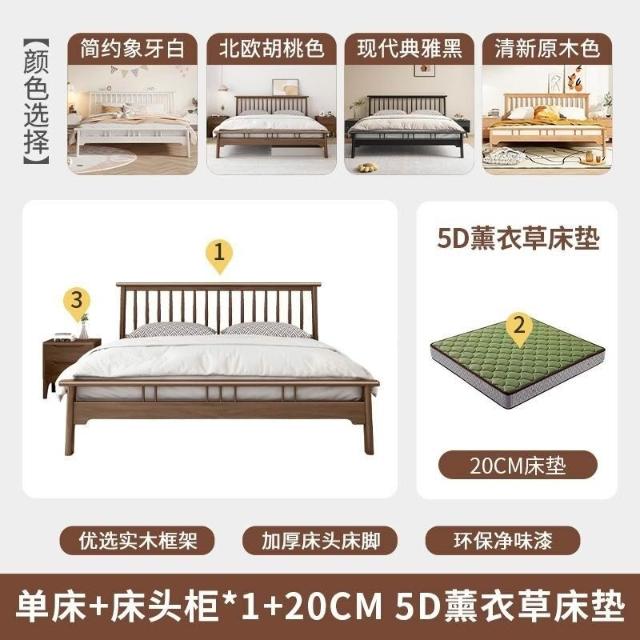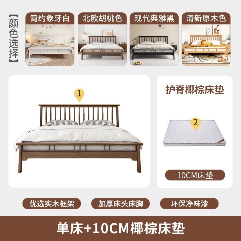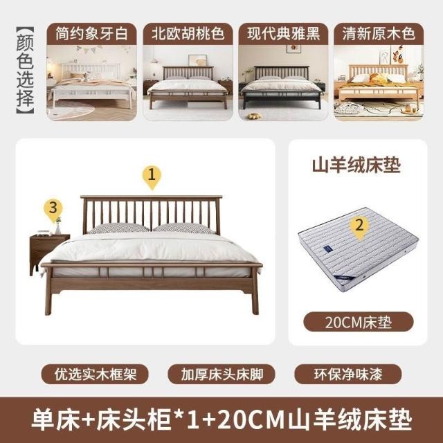北歐實木床1米2單人1米5全實木現代簡約1.8 法式雙人主臥原木民宿 2