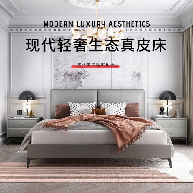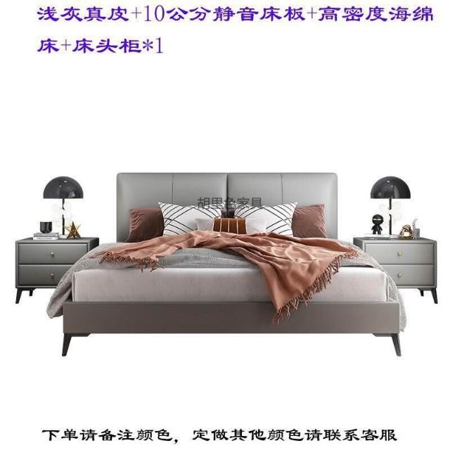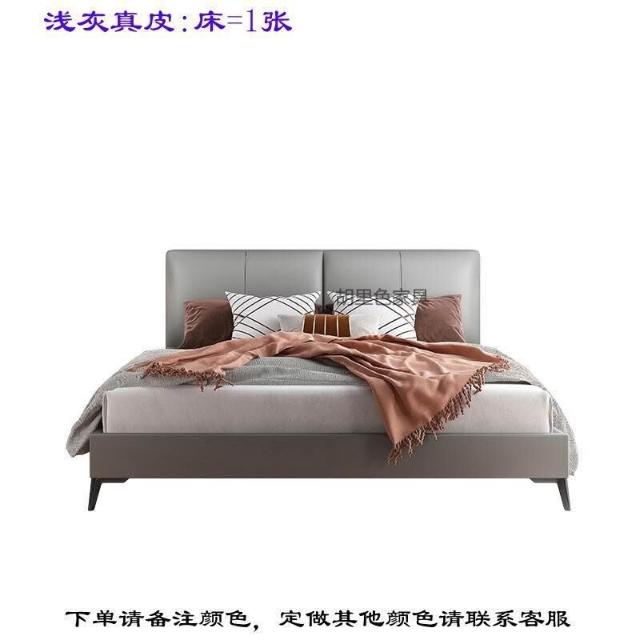意式極簡納帕真皮床小戶型現代簡約主臥1米8實木雙人皮床現貨直發 3