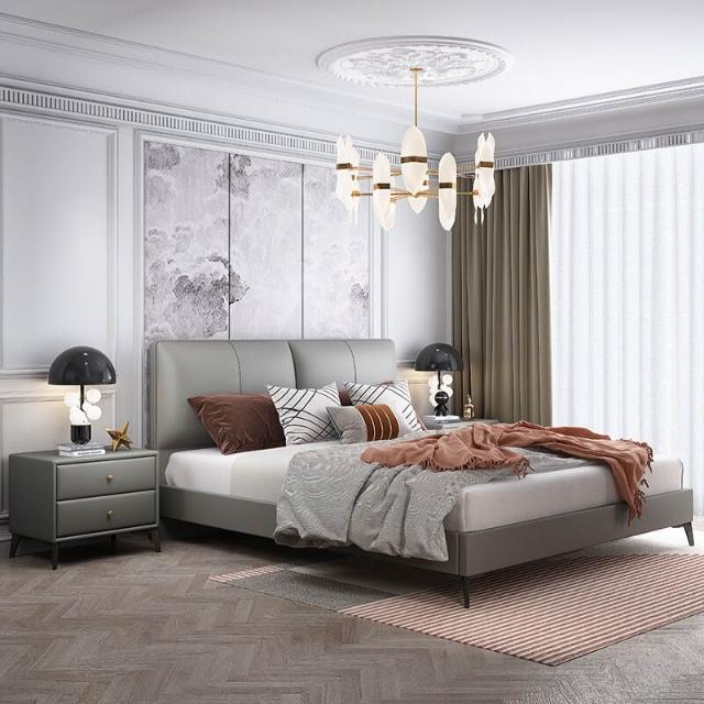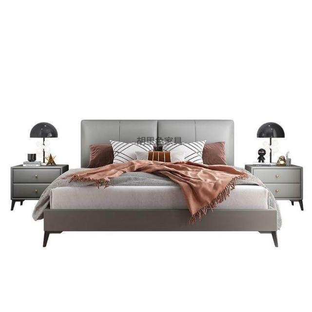 意式極簡納帕真皮床小戶型現代簡約主臥1米8實木雙人皮床現貨直發 3