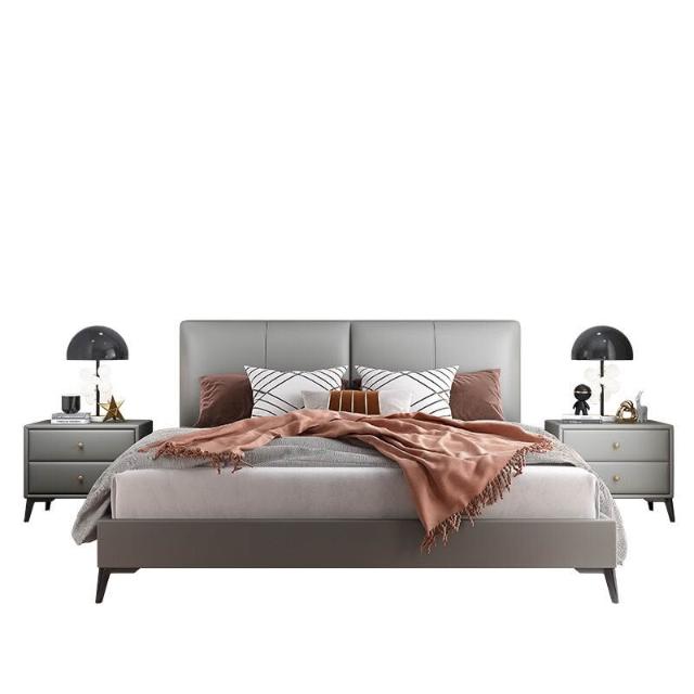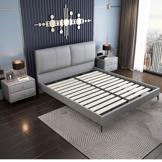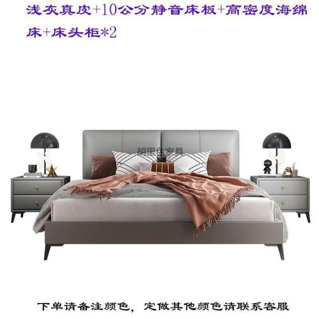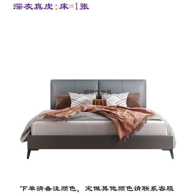 意式極簡納帕真皮床小戶型現代簡約主臥1米8實木雙人皮床現貨直發 3