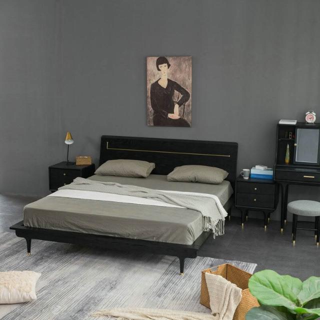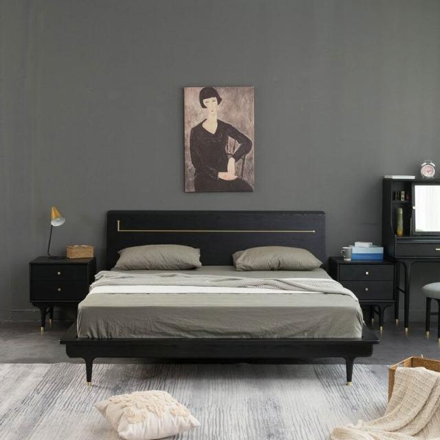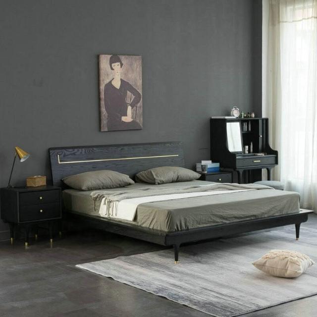 北歐表情家具現代簡約黑色橡木全實木黑胡桃木雙人床民宿家居代發 78