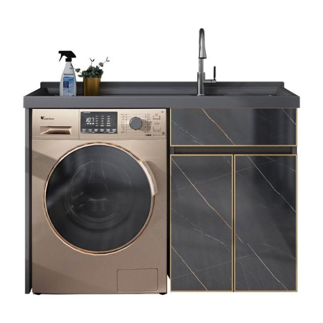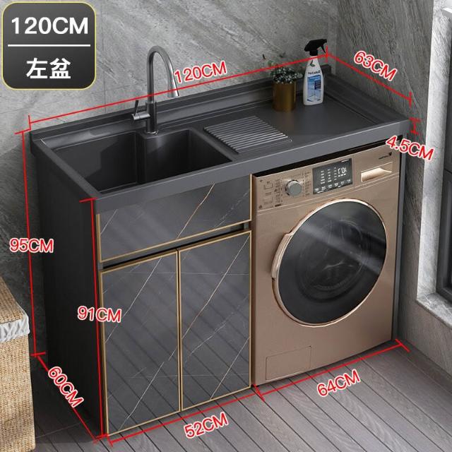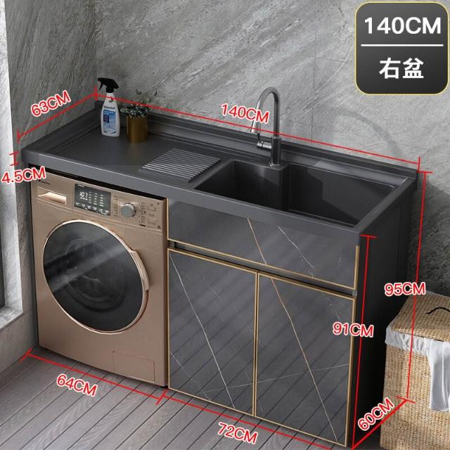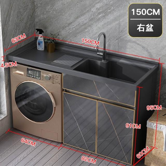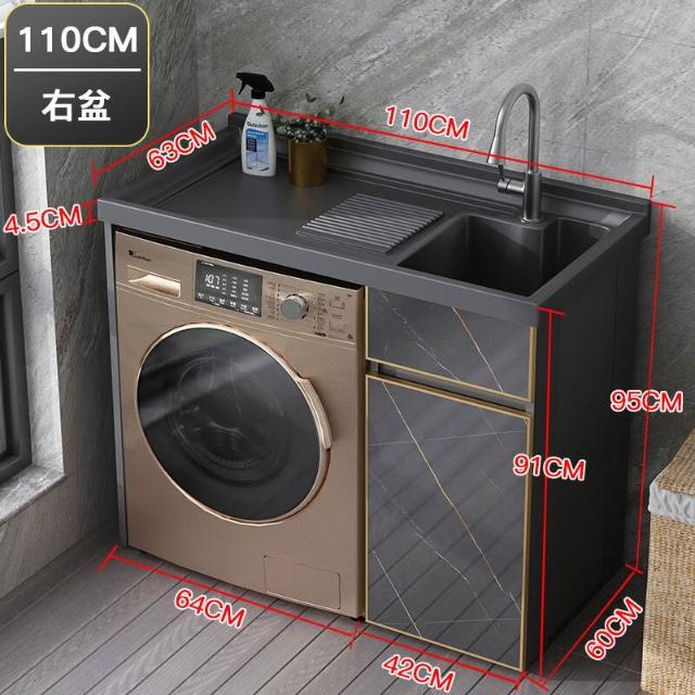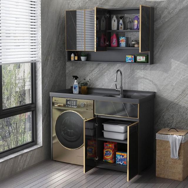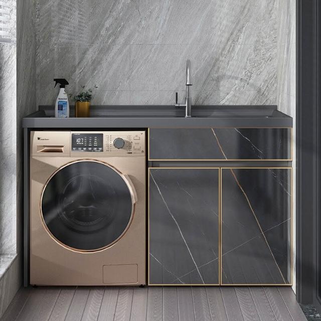 木子家衣櫥 池槽太空鋁石英石一體陽臺洗衣機櫃子帶搓板臺盆櫃組合洗衣櫃伴侶 3