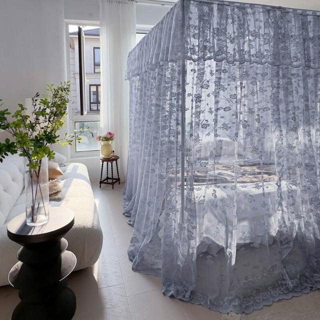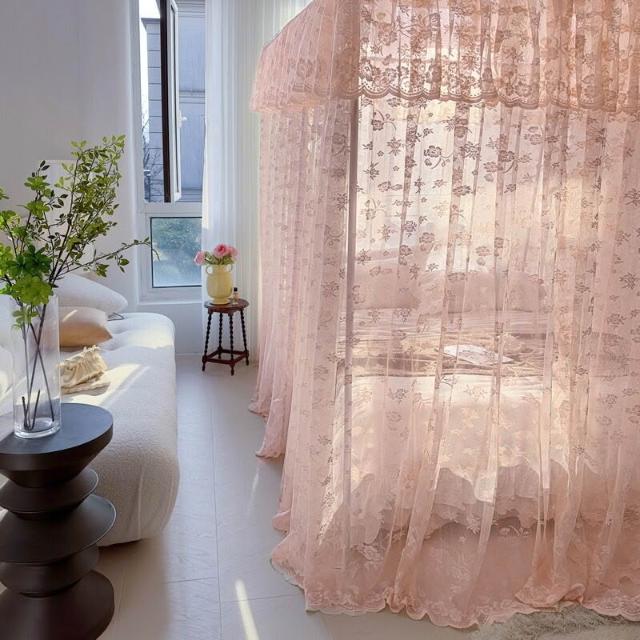 木子家衣櫥 法式蕾絲蚊帳家用落地式宮廷三開門公主風臥室架子床防蚊床幔支架 1