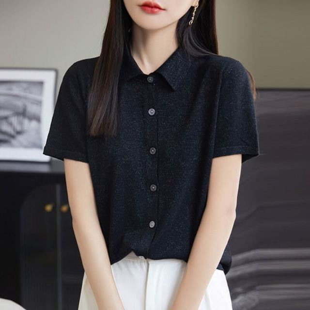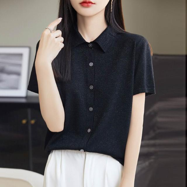 木子家衣櫥 領精紡羊毛針織開衫女士氣質休閑簡約時尚短袖百搭單排扣外套 9