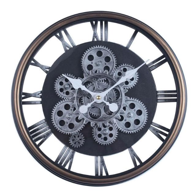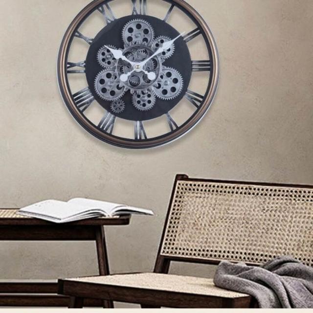 木子家衣櫥 齒輪轉動掛鐘大型復古靜音美式時鐘機械高級鐘表掛墻獨特設計時鐘 5