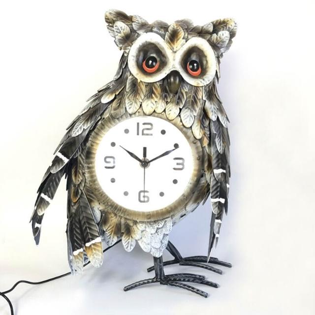木子家衣櫥 鐵藝工藝鐘座鐘 貓頭鷹創意鐘表 客廳輕奢擺鐘動物夜光帶燈36.5 97
