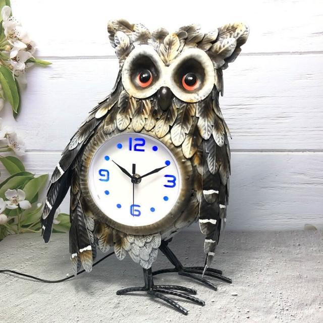 木子家衣櫥 鐵藝工藝鐘座鐘 貓頭鷹創意鐘表 客廳輕奢擺鐘動物夜光帶燈36.5 97