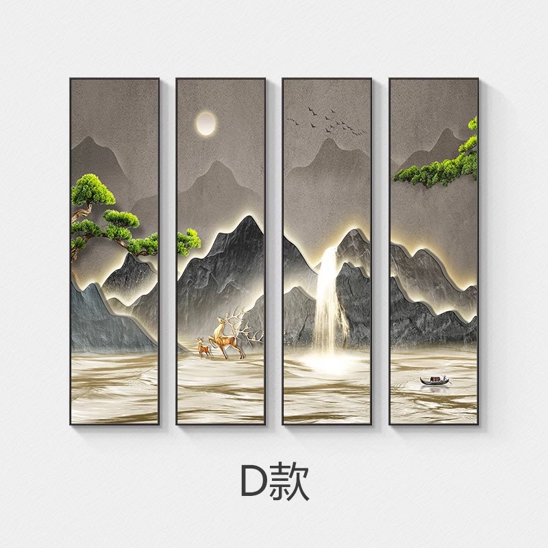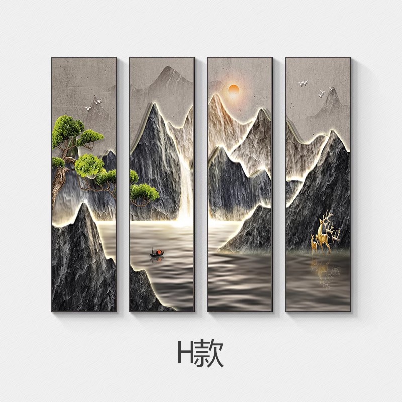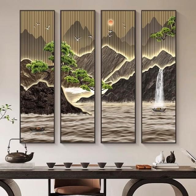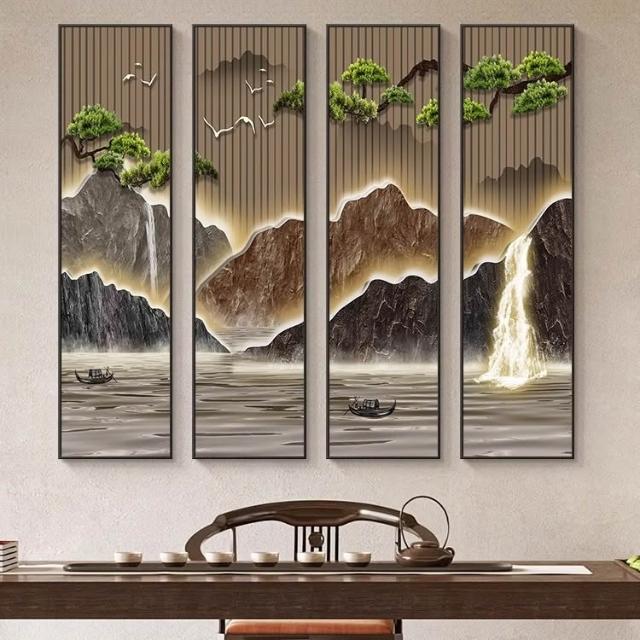 木子家衣櫥 茶室四聯掛畫客廳裝飾畫沙發背景墻壁畫新中式山水畫大氣中堂書房 535
