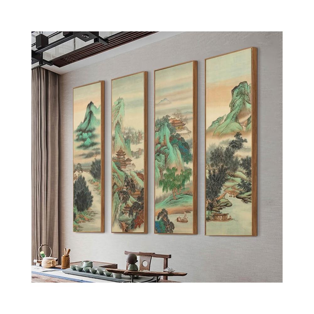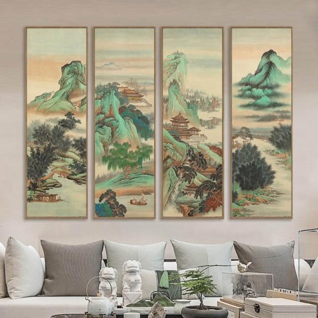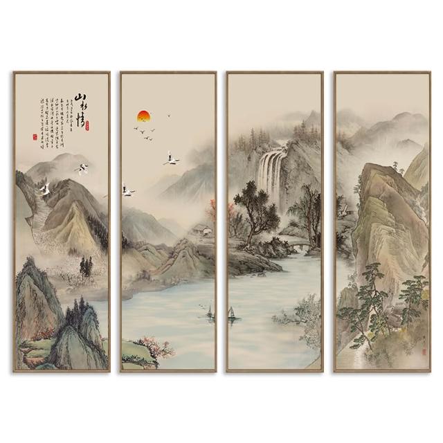 木子家衣櫥 新中式山水豎版長條客廳背景墻裝飾畫酒店民宿玄關走廊茶室掛畫 2 8