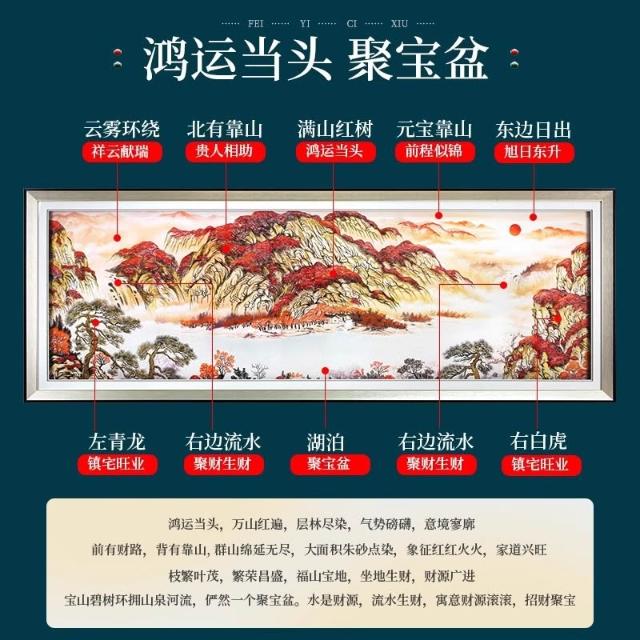 木子家衣櫥 鴻運當頭客廳沙發背景墻刺繡裝飾畫橫版新中式織錦蘇繡山水掛畫 7