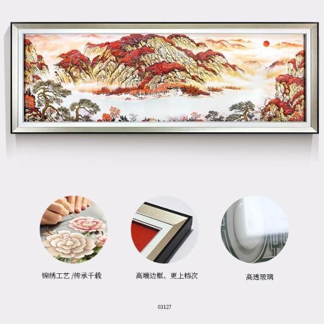 木子家衣櫥 鴻運當頭客廳沙發背景墻刺繡裝飾畫橫版新中式織錦蘇繡山水掛畫 7
