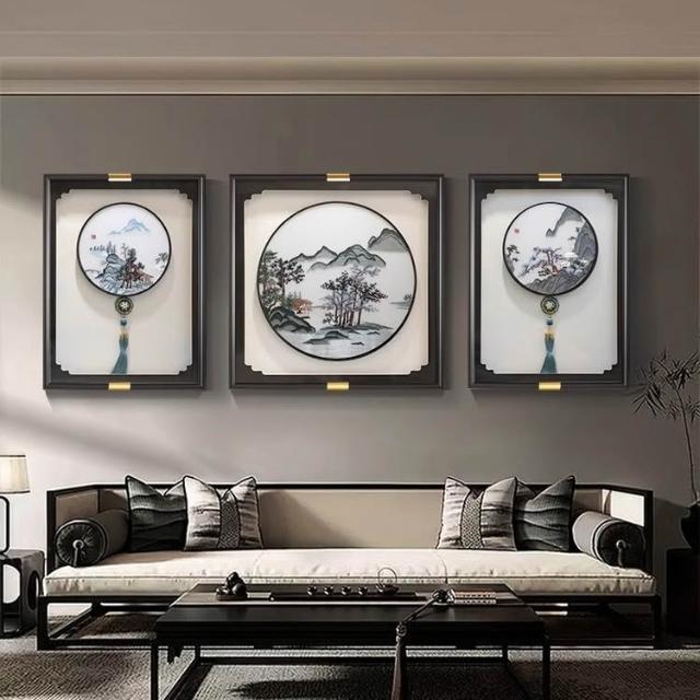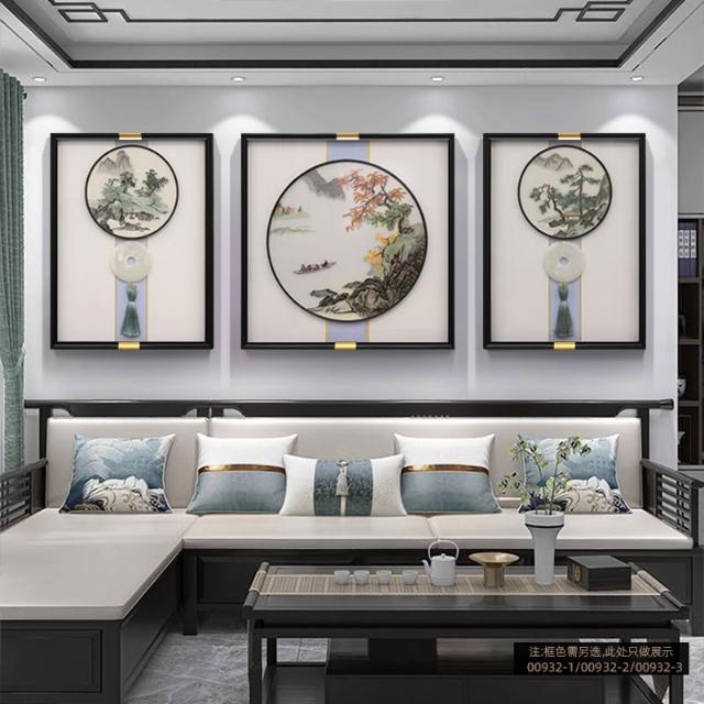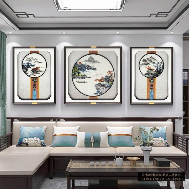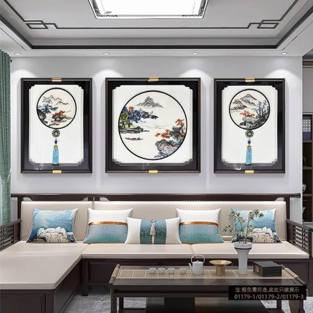 木子家衣櫥 客廳裝飾畫高檔沙發背景墻掛畫山水三聯畫新中式大氣書房刺繡壁畫 57