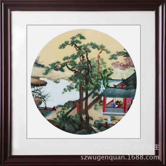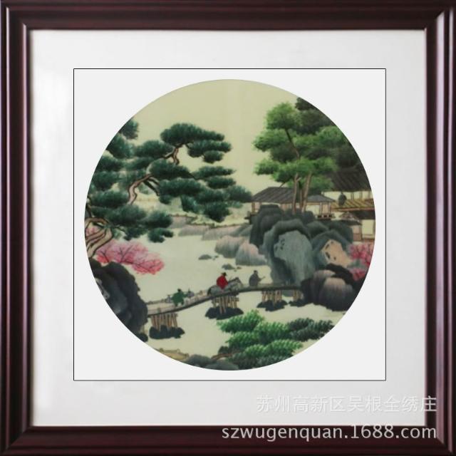 木子家衣櫥 蘇繡成品畫客廳書房帶框掛畫蘇州手工刺繡裝飾畫商務禮品山水風景 634