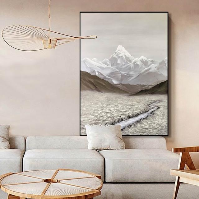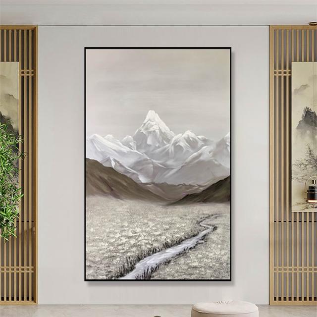 木子家衣櫥 辦公室山水風景畫手繪油畫中式入戶玄關掛畫客廳走廊豎版大幅壁畫 34
