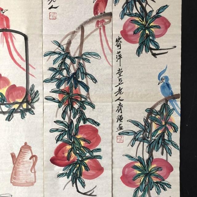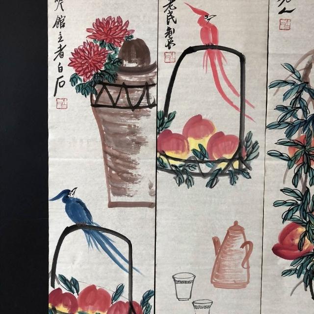 木子家衣櫥 齊白石花鳥,四條屏純手繪作品尺寸約137*34厘米未裝裱帶水印字畫 86