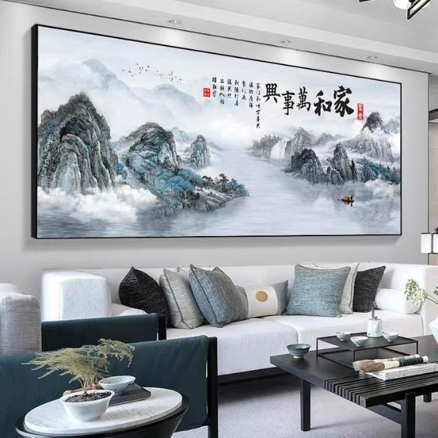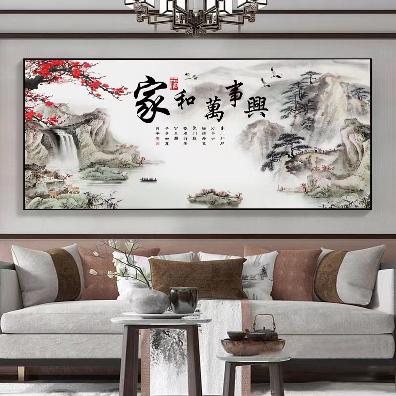 木子家衣櫥 家和萬事興客廳掛畫2025年新款牌匾中堂山水裝飾字畫農村堂屋大氣 90