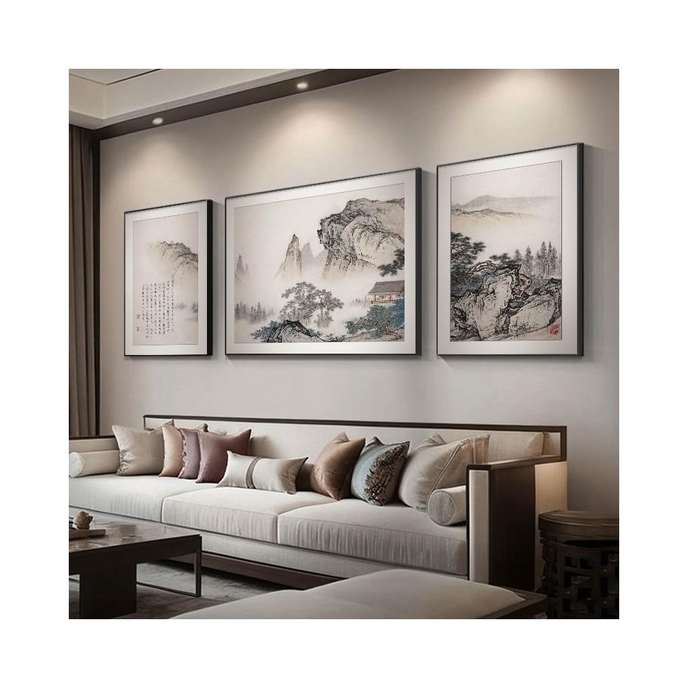 木子家衣櫥 新中式客廳裝飾畫高級感實木沙發背景墻掛畫三聯古典山水字畫壁畫 3 8