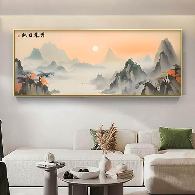 木子家衣櫥 旭日東升客廳裝飾畫新中式沙發背景墻掛畫日出山水風景辦公室壁畫 426
