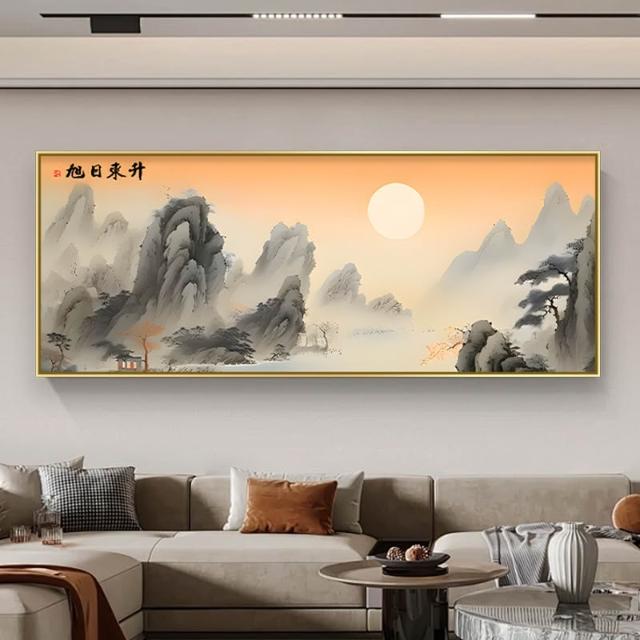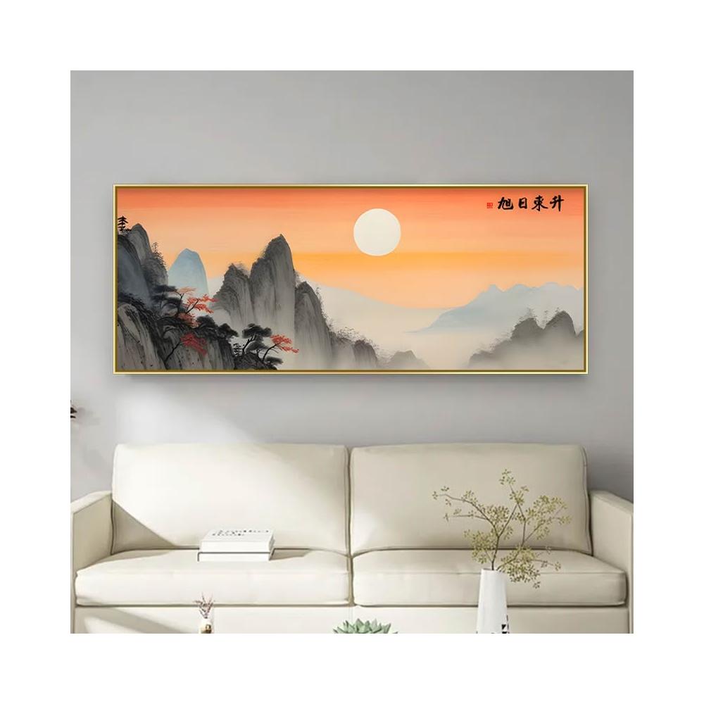 木子家衣櫥 旭日東升客廳裝飾畫新中式沙發背景墻掛畫日出山水風景辦公室壁畫 426
