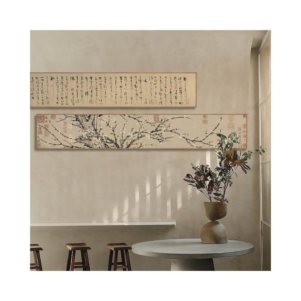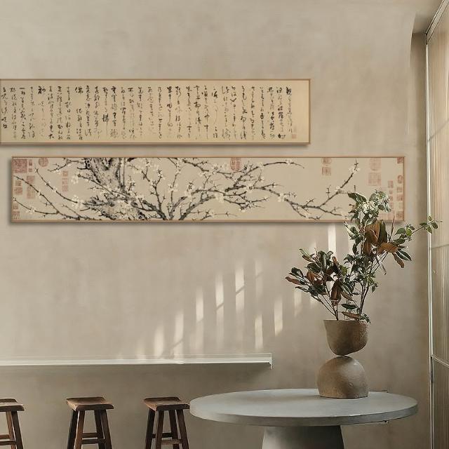 木子家衣櫥 新中式雙聯禅意裝飾畫客廳沙發背景墻茶室酒店山水梅花書法掛畫 000