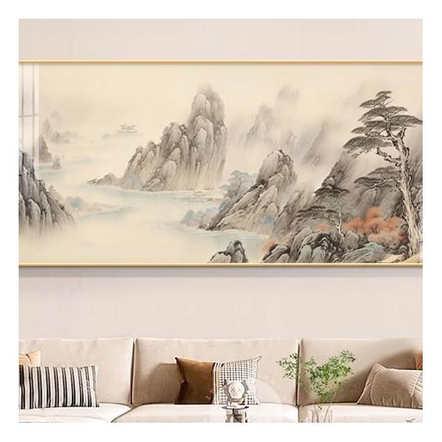 木子家衣櫥 掛畫新山水畫壁畫圖一西墻整幅客廳沙發中式靠山辦公室背景墻水墨 16