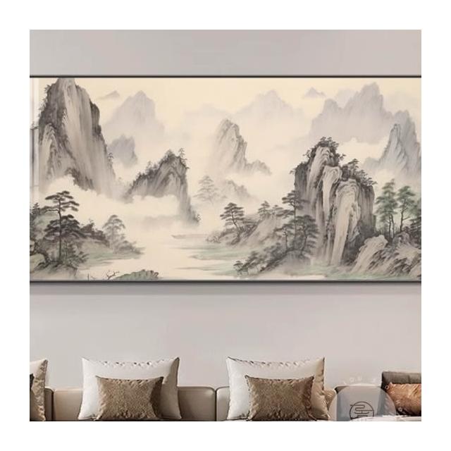 木子家衣櫥 掛畫新山水畫壁畫圖一西墻整幅客廳沙發中式靠山辦公室背景墻水墨 16