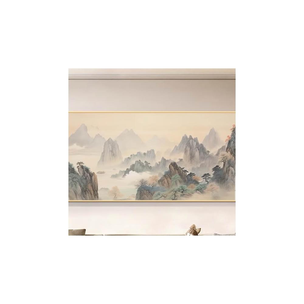 木子家衣櫥 掛畫新山水畫壁畫圖一西墻整幅客廳沙發中式靠山辦公室背景墻水墨 16