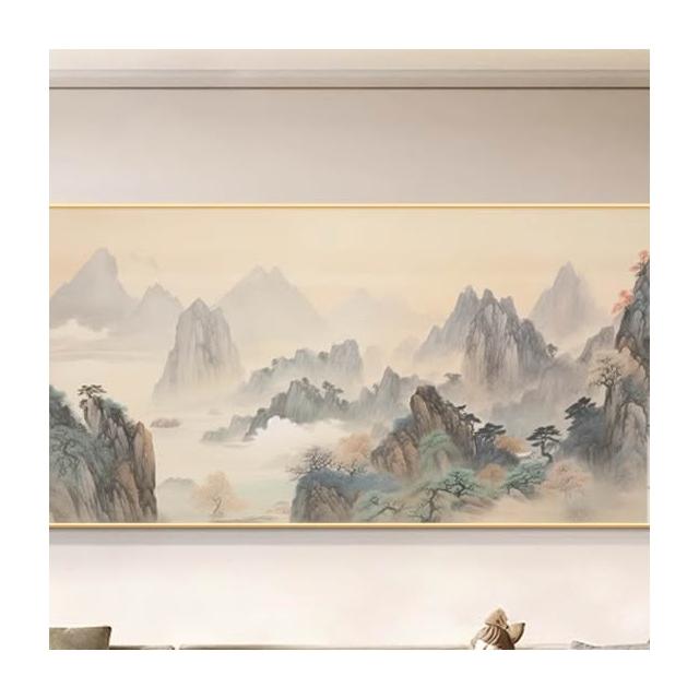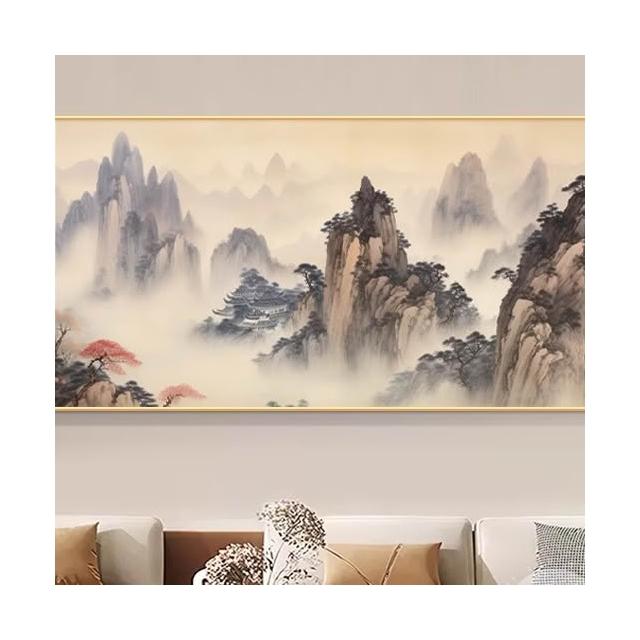 木子家衣櫥 掛畫新山水畫壁畫圖一西墻整幅客廳沙發中式靠山辦公室背景墻水墨 16