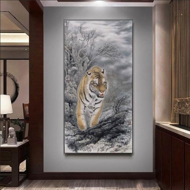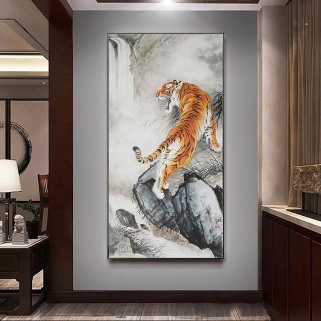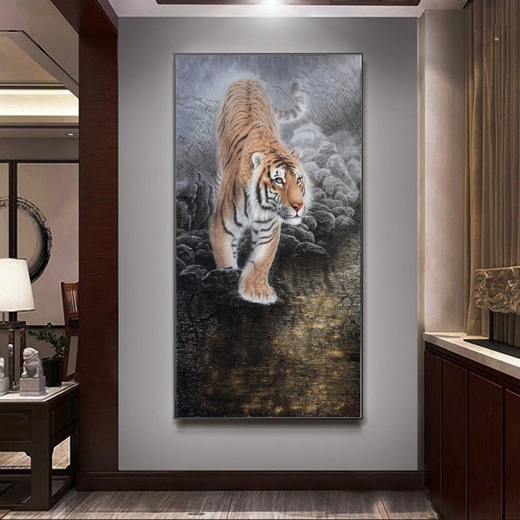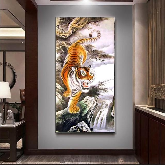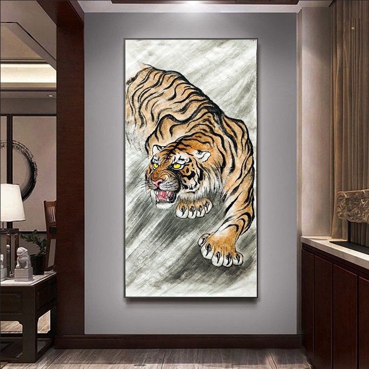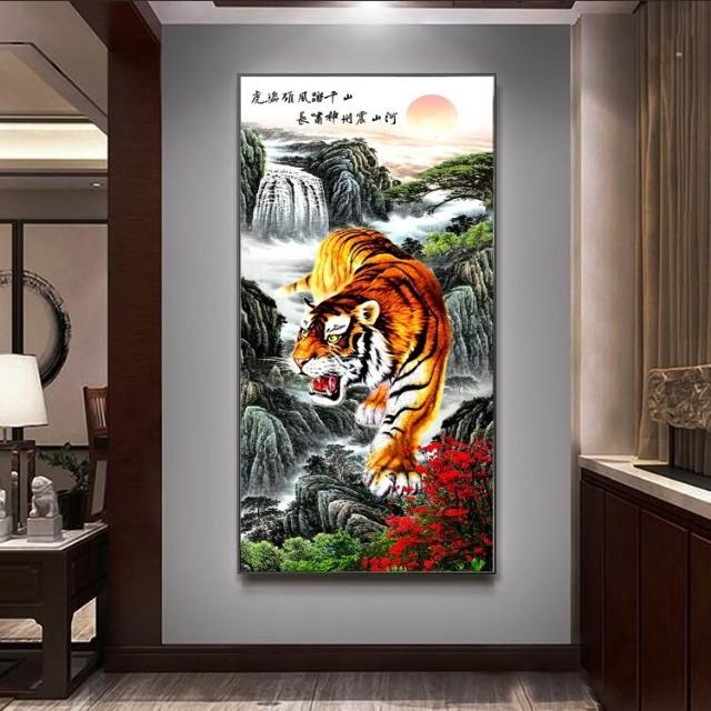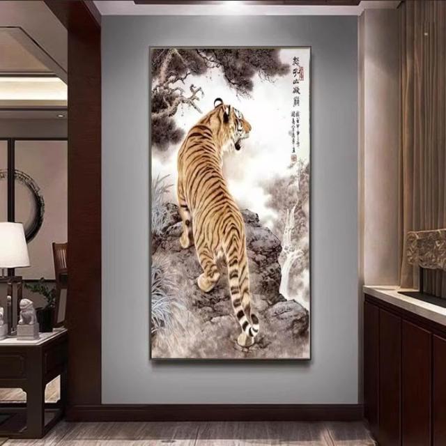 木子家衣櫥 虎畫國畫上山虎裝飾畫老虎圖客廳風水畫下山虎晶瓷畫中式虎掛畫 52