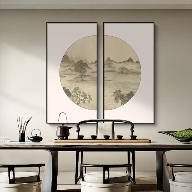 木子家衣櫥 新中式茶室背景墻裝飾畫水墨畫書房山水國畫客廳餐廳掛畫玄關壁畫 758