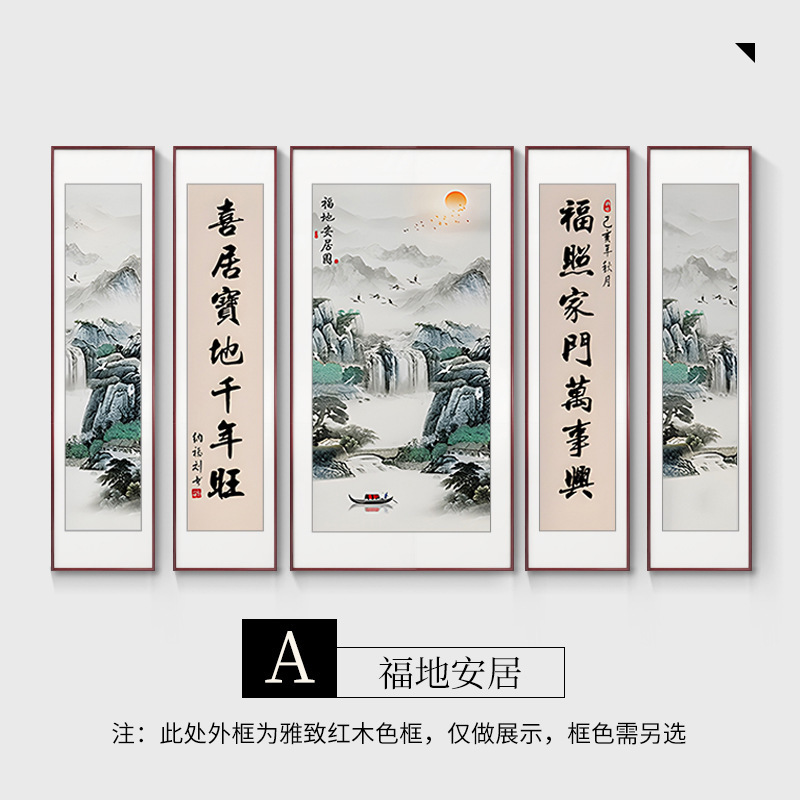 木子家衣櫥 中堂畫農村堂屋大氣客廳掛畫山水畫新中式裝飾畫大廳對聯字畫五聯 67