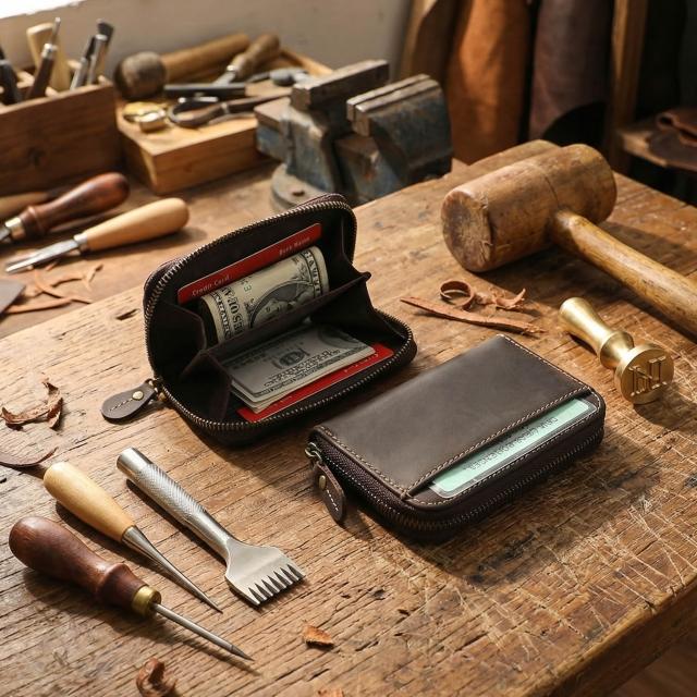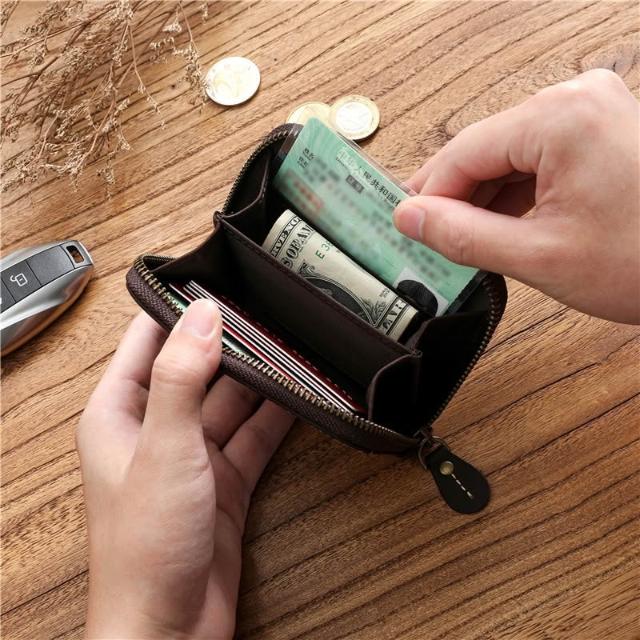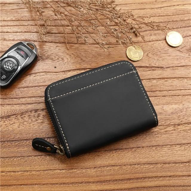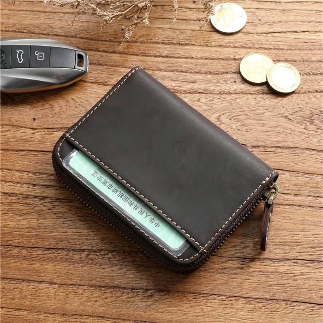 木子家衣櫥 復古男士瘋馬頭層牛皮短款錢包真皮拉鏈零錢包簡約駕駛證包皮夾潮 97