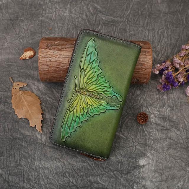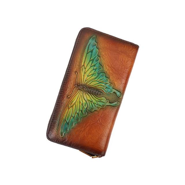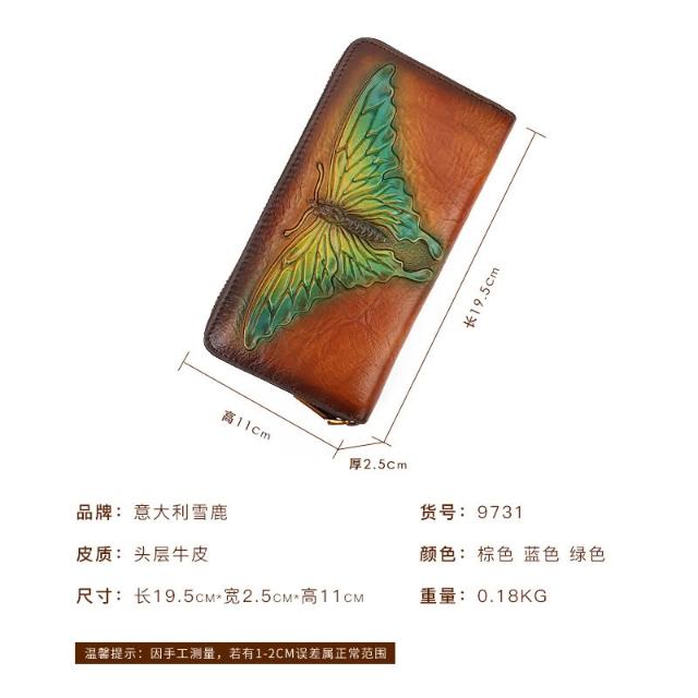木子家衣櫥 外貿蝴蝶壓花真皮錢包復古手拿包女頭層牛皮零錢卡包代發文藝風 27